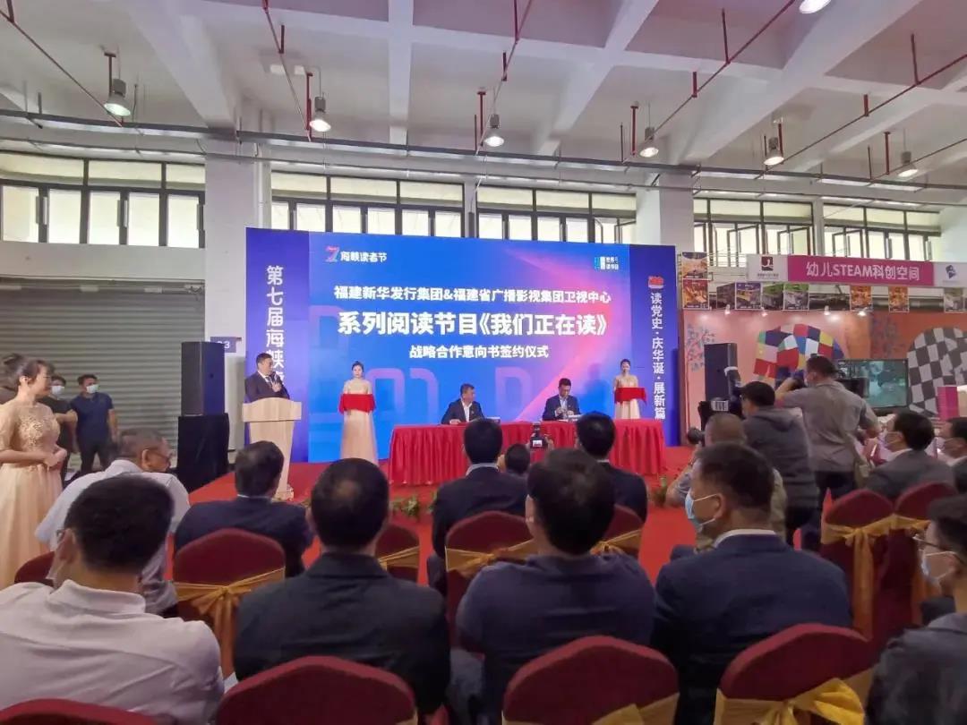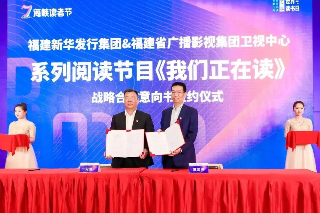 4月22日上午,海峽出版發(fā)行集團(tuán)所屬的福建新華發(fā)行集團(tuán)還和福建省廣播影視集團(tuán)衛(wèi)視中心簽訂了系列閱讀節(jié)目《我們正在讀》戰(zhàn)略合作意向書(shū)。省廣播影視集團(tuán)黨組副書(shū)記、總經(jīng)理莊志松,福建教育學(xué)院黨委委員、副院長(zhǎng)張志剛,海峽出版發(fā)行集團(tuán)黨委副書(shū)記嚴(yán)桂忠出席簽約儀式。海峽出版發(fā)行集團(tuán)黨委委員、副總經(jīng)理何強(qiáng),省廣播影視集團(tuán)黨組成員、副董事長(zhǎng)陳加偉上臺(tái)簽約。