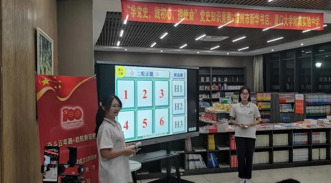 5月14號晚,福建新華發(fā)行集團漳州分公司與廈門大學(xué)附屬實驗中學(xué)在校園內(nèi)的新華書店開展了一場別開生面的黨史知識競賽,以此回顧黨的崢嶸歲月,謳歌黨的光輝業(yè)績,繼承和發(fā)揚黨的優(yōu)良傳統(tǒng)與作風(fēng),獻禮建黨百年。