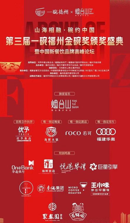 今天上午,第三屆一碗福州金碗獎(jiǎng)?lì)C獎(jiǎng)盛典暨中國(guó)新餐飲品牌高峰論壇,在福州·煙臺(tái)山正式拉開(kāi)帷幕,這是福州餐飲行業(yè)的一次盛會(huì),被稱為福州餐飲界的“奧斯卡”盛典。 本次活動(dòng)由萬(wàn)科煙臺(tái)山商業(yè)漫步街區(qū)獨(dú)家冠名,世界中餐業(yè)聯(lián)合會(huì)、福建省商務(wù)廳、福建省歸國(guó)華僑聯(lián)合會(huì)、福州市商務(wù)局聯(lián)合指導(dǎo),福州日?qǐng)?bào)社、福州市餐飲烹飪行業(yè)協(xié)會(huì)、福州市旅游協(xié)會(huì)主辦,福建省餐飲文化促進(jìn)會(huì)、中國(guó)國(guó)際教育電視臺(tái)中華美食文化頻道、893音樂(lè)廣播、901左海之聲聯(lián)辦,福州視通傳媒有限公司承辦。 本次盛典活動(dòng)特別邀請(qǐng)了全國(guó)14位餐飲行業(yè)重磅嘉賓蒞臨現(xiàn)場(chǎng),來(lái)自餐飲界、食品界、電商界的大佬們,聚焦餐飲領(lǐng)域,與現(xiàn)場(chǎng)近百位福州餐飲人深入剖析市場(chǎng)現(xiàn)狀,探討新時(shí)代下福州餐飲行業(yè)發(fā)展趨勢(shì),分享品牌運(yùn)營(yíng)經(jīng)驗(yàn),攜手洞見(jiàn)未來(lái)。同時(shí),本次盛典發(fā)布了福州本土2019-2020年度TOP餐廳以及HOT餐廳名單,這是一份福州專屬的美食指南。