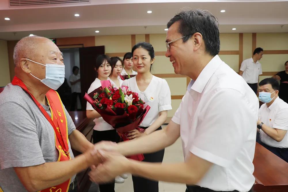 為慶祝中國(guó)共產(chǎn)黨成立100周年,激勵(lì)黨員不忘初心、牢記使命,以更加昂揚(yáng)的斗志和務(wù)實(shí)的擔(dān)當(dāng)創(chuàng)新推進(jìn)全省退役軍人工作高質(zhì)量發(fā)展,7月1日上午,省退役軍人廳舉行“兩優(yōu)一先”表彰會(huì)議,表彰廳機(jī)關(guān)和所屬單位優(yōu)秀共產(chǎn)黨員、優(yōu)秀黨務(wù)工作者和先進(jìn)基層黨組織。廳黨組書(shū)記、廳長(zhǎng)伍斌,黨組成員、副廳長(zhǎng)辛志華、鄭敏、羅慶春參加會(huì)議并為受表彰的集體和個(gè)人頒獎(jiǎng),二級(jí)巡視員李提金和廳機(jī)關(guān)全體黨員、所屬單位負(fù)責(zé)人參加會(huì)議。 伍斌為所屬單位兩位黨齡超過(guò)50年的退休老黨員許世農(nóng)、吳啟文頒發(fā)“光榮在黨50年”紀(jì)念章。 全體黨員面對(duì)鮮紅黨旗重溫入黨誓詞,深切表達(dá)大家在黨的領(lǐng)導(dǎo)下拼搏奮斗、砥礪前行,努力做好退役軍人工作,服務(wù)經(jīng)濟(jì)社會(huì)發(fā)展、服務(wù)國(guó)防和軍隊(duì)建設(shè)的堅(jiān)定決心。 會(huì)議向省直機(jī)關(guān)優(yōu)秀共產(chǎn)黨員朱鋒旺、優(yōu)秀黨務(wù)工作者陳勇及先進(jìn)基層黨組織思想政治和權(quán)益維護(hù)處(政策法規(guī)處)黨支部頒發(fā)榮譽(yù)證書(shū)、獎(jiǎng)?wù)潞酮?jiǎng)牌,向省退役軍人廳14名優(yōu)秀共產(chǎn)黨員、4名優(yōu)秀黨務(wù)工作者和1個(gè)先進(jìn)基層黨組織頒發(fā)榮譽(yù)證書(shū)和獎(jiǎng)牌。 會(huì)議要求,全廳廣大黨員要銘記習(xí)近平總書(shū)記“入黨誓詞字?jǐn)?shù)不多,記住并不難,難的是終身堅(jiān)守。每個(gè)黨員要牢記入黨誓詞,經(jīng)常加以對(duì)照,堅(jiān)定不移,終生不渝。”的殷切囑托,不忘初心、牢記使命,以更加飽滿(mǎn)的熱情投身退役軍人工作。 會(huì)議強(qiáng)調(diào),全廳廣大黨員一要迅速“學(xué)”。結(jié)合廳黨組(擴(kuò)大)會(huì)、專(zhuān)題民主生活會(huì)和黨支部會(huì)議,迅速學(xué)習(xí)貫徹習(xí)近平總書(shū)記在慶祝中國(guó)共產(chǎn)黨成立100周年大會(huì)上的重要講話(huà)精神,深刻領(lǐng)會(huì)精神實(shí)質(zhì),準(zhǔn)確把握核心要義,把思想和行動(dòng)統(tǒng)一到習(xí)近平總書(shū)記重要講話(huà)精神上來(lái)。二要持續(xù)“做”。堅(jiān)定不移加強(qiáng)黨的領(lǐng)導(dǎo),推進(jìn)全面從嚴(yán)治黨,推進(jìn)黨的建設(shè)新的偉大工程,全面貫徹黨的基本理論、基本路線(xiàn)、基本方略,不斷增強(qiáng)“四個(gè)意識(shí)”、堅(jiān)定“四個(gè)自信”、做到“兩個(gè)維護(hù)”,切實(shí)提高政治判斷力、政治領(lǐng)悟力、政治執(zhí)行力,把黨風(fēng)廉政建設(shè)和反腐敗各項(xiàng)工作落到實(shí)處。三要強(qiáng)力“改”。大力弘揚(yáng)“馬上就辦、真抓實(shí)干”“滴水穿石”“四進(jìn)萬(wàn)家”等優(yōu)良作風(fēng),發(fā)揚(yáng)斗爭(zhēng)精神,增強(qiáng)斗爭(zhēng)本領(lǐng),敢于較真碰硬,善于攻堅(jiān)克難,堅(jiān)持“當(dāng)下改”“長(zhǎng)久立”,做到舉一反三、建章立制,不折不扣落實(shí)巡視發(fā)現(xiàn)問(wèn)題整改,樹(shù)立退役軍人事務(wù)系統(tǒng)全力服務(wù)經(jīng)濟(jì)社會(huì)發(fā)展、主動(dòng)服務(wù)國(guó)防和軍隊(duì)建設(shè)、用心服務(wù)退役軍人和其他優(yōu)撫對(duì)象的良好形象,帶著感情和溫度創(chuàng)新推動(dòng)全省退役軍人工作高質(zhì)量發(fā)展。 |