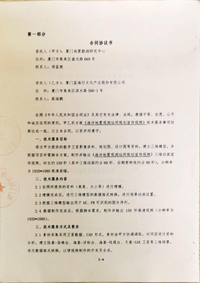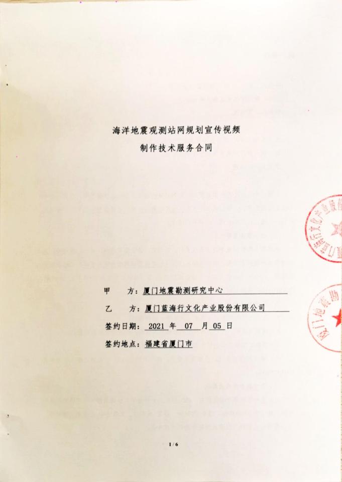 廈門地震勘測研究中心海洋地震觀測站網(wǎng)規(guī)劃宣傳視頻制作技術服務合同公示