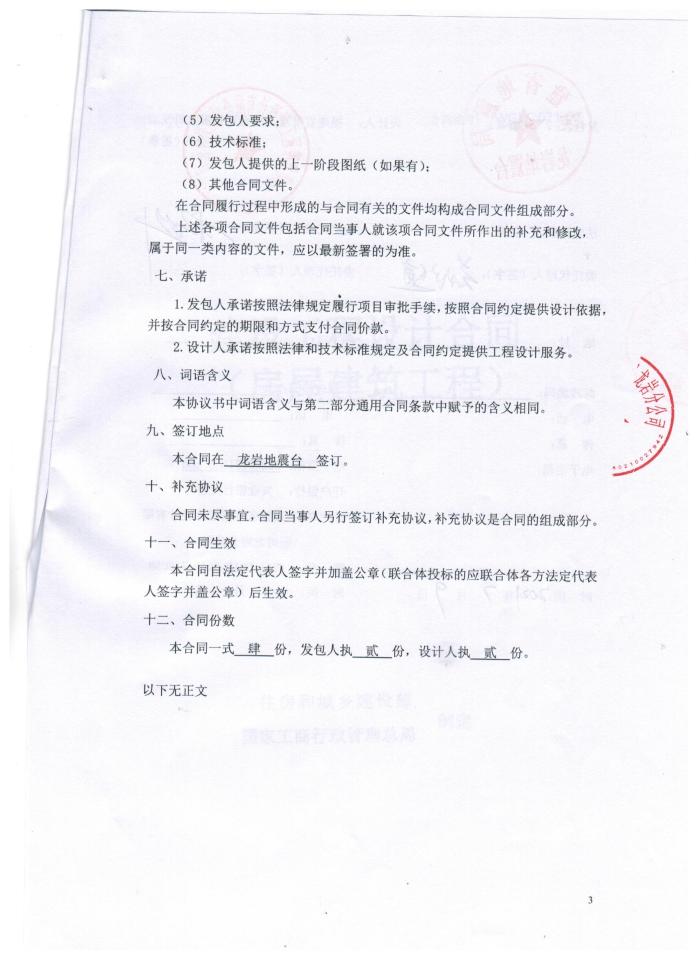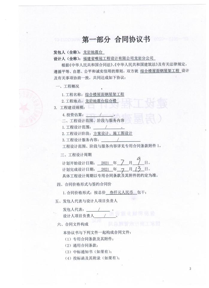龍巖地震臺(tái)綜合樓鋼屋架工程設(shè)計(jì)合同公示