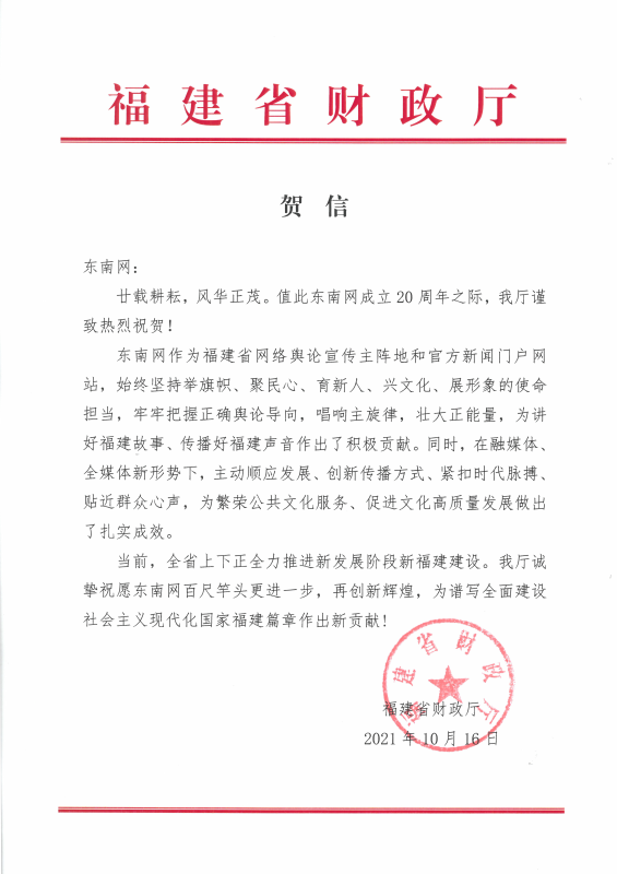 福建省財政廳賀信