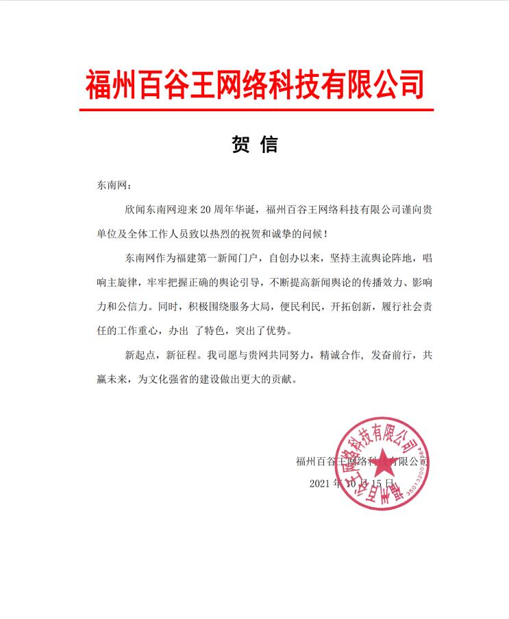 福州白谷王網(wǎng)絡(luò)科技有限公司賀信