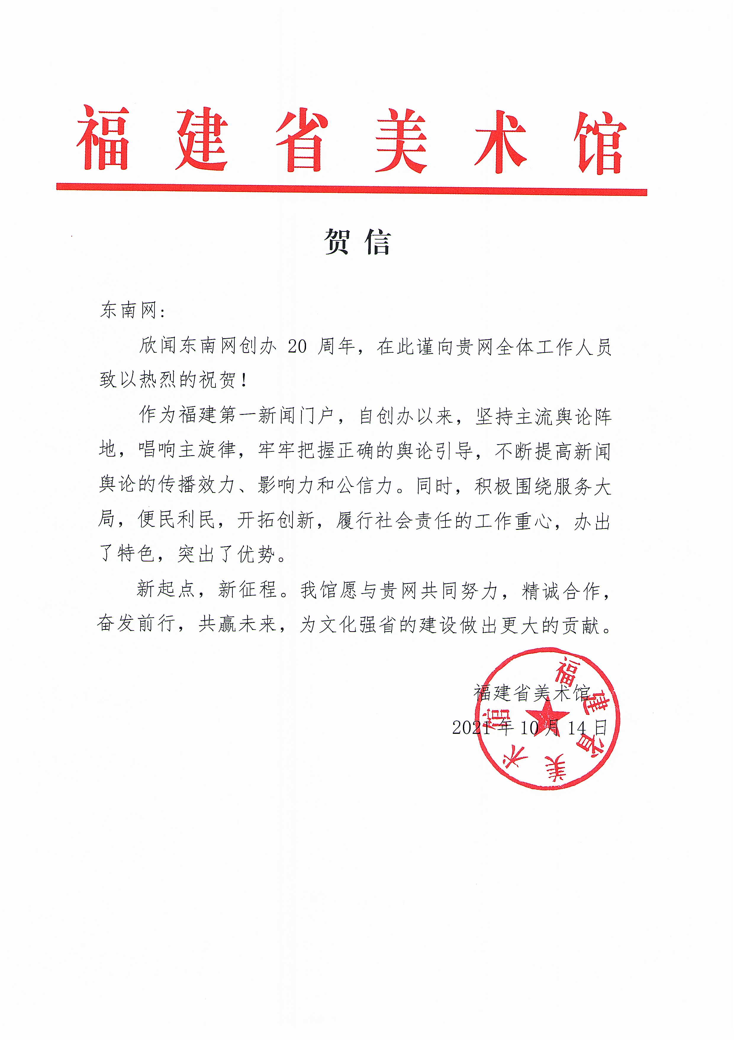 福建省美術(shù)館賀信