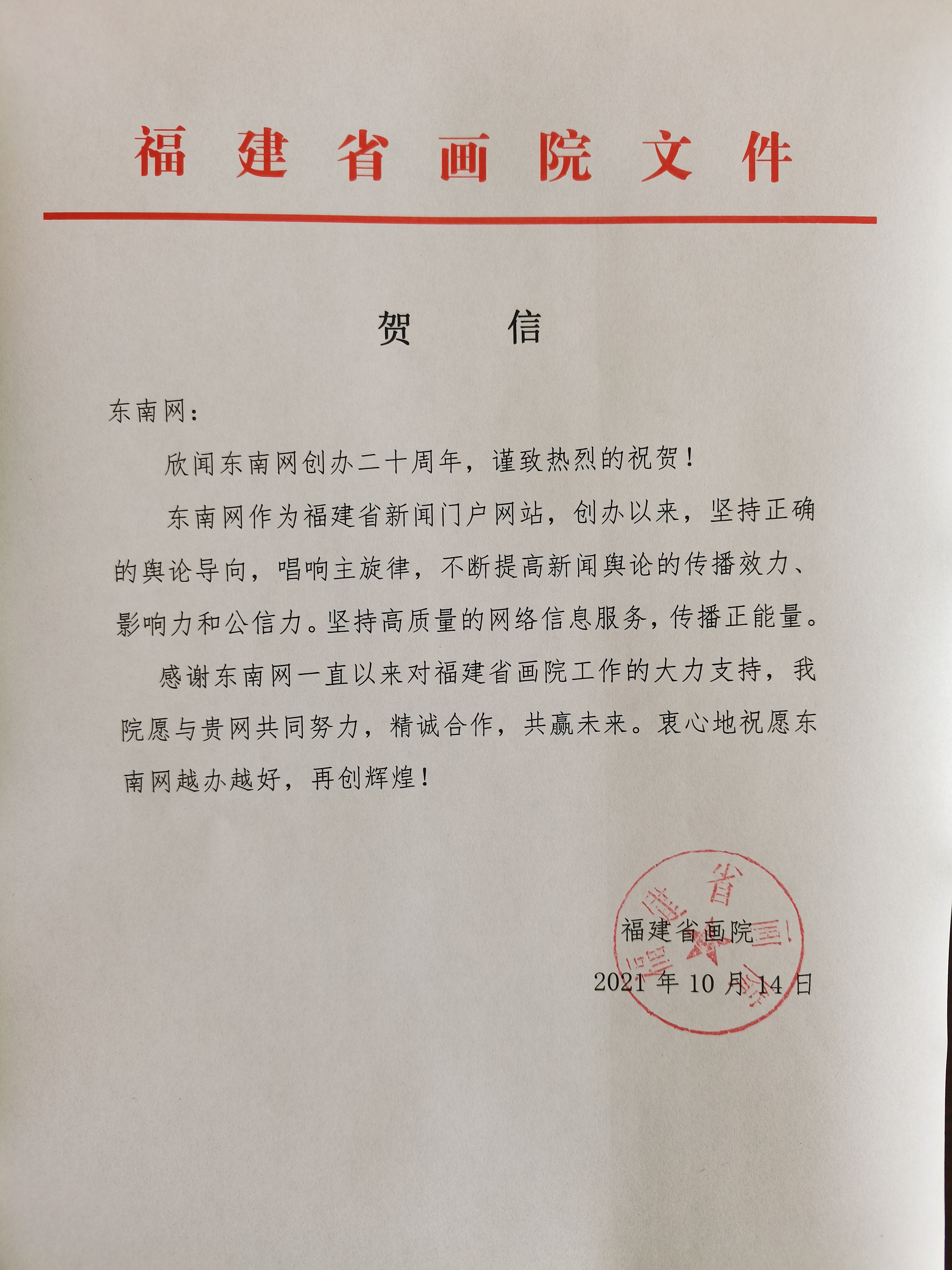 福建省畫院賀信