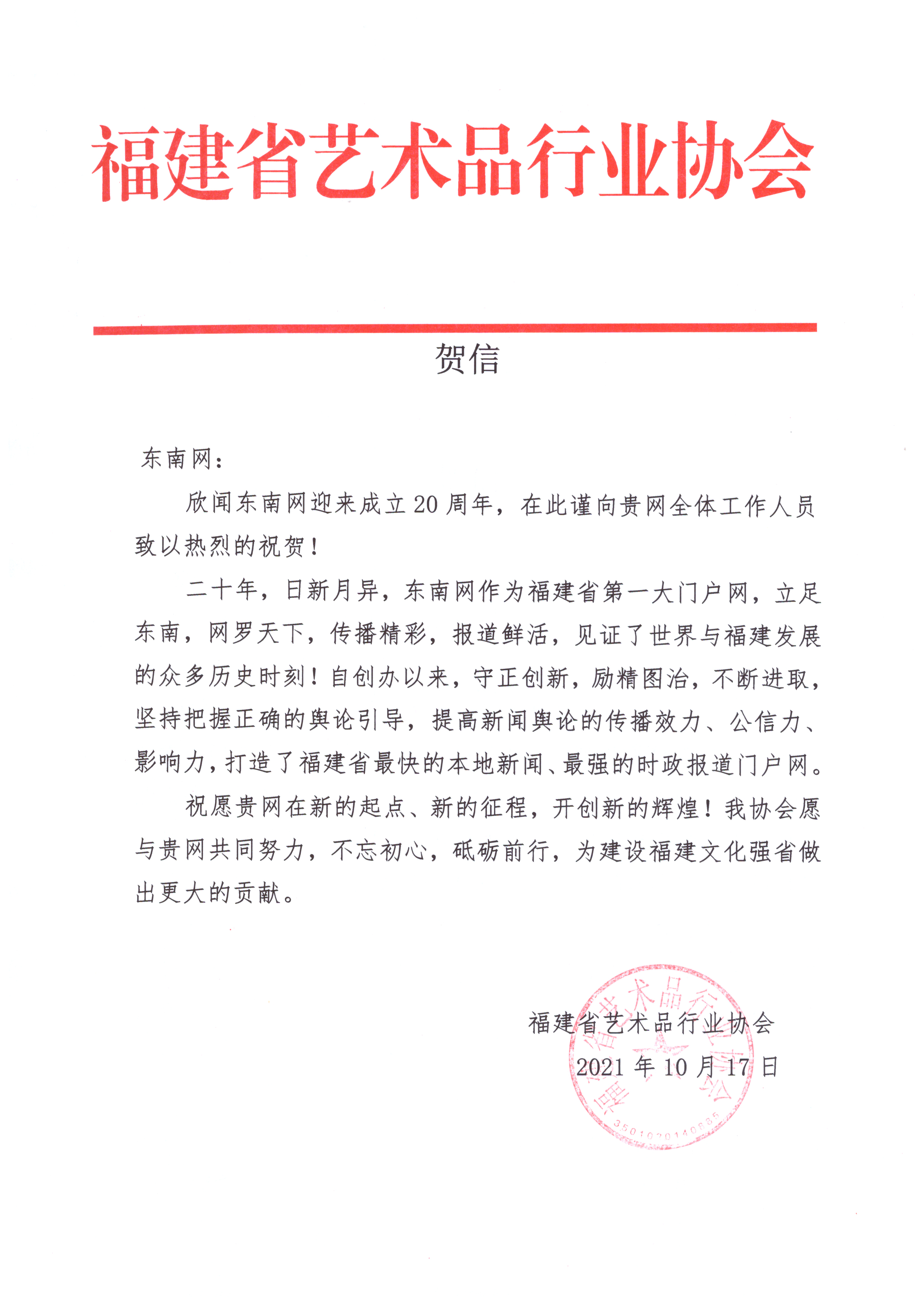 福建省藝術(shù)品行業(yè)協(xié)會賀信