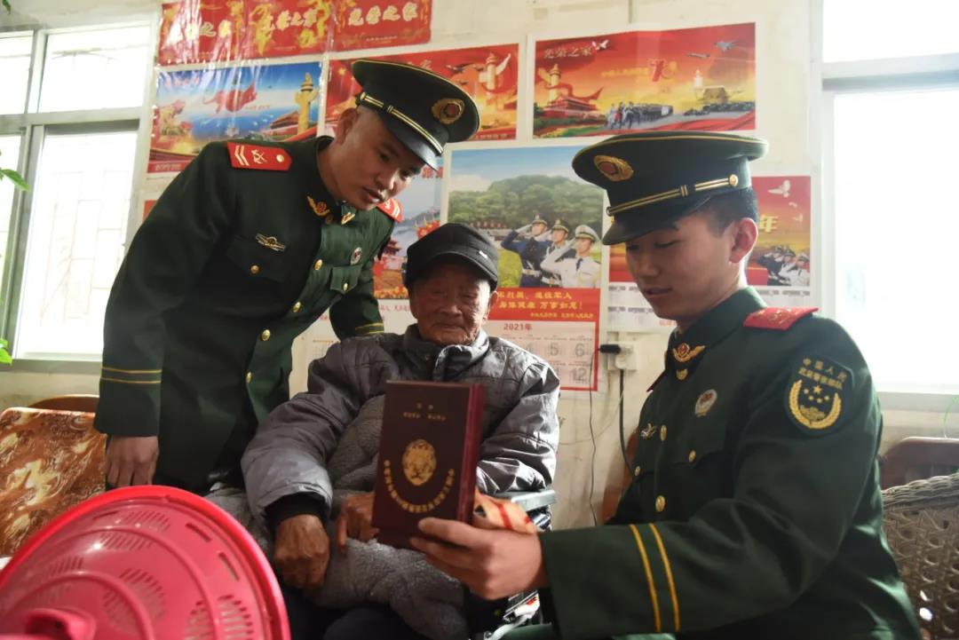 春節(jié)前夕,武警龍巖支隊執(zhí)勤三大隊官兵來到上杭縣才溪鎮(zhèn)發(fā)坑村,看望百歲紅軍失散人員林攀隆。 官兵整齊劃一地到林老家中慰問 幫忙清掃衛(wèi)生 “當時參加紅軍兒童團的時候,我只有13歲,跟著紅軍在農村貼宣傳標語,宣講紅軍的政策。1935年在永定陳東坑的戰(zhàn)斗中,我所在的部隊被打散。那個晚上槍炮聲陣陣,呼呼地傳入耳朵中,好多同志都犧牲了?!苯衲?03歲的林老,給官兵們講述當年參加革命的經歷。講到動情之處,眼角不禁泛起淚花。 林老給戰(zhàn)士講述革命故事 林攀隆老人1931年參加紅軍,是名副其實的“紅小鬼”。1933年6月,林老所在的紅十二軍整編為紅一方面軍獨立第一團,他隨部隊轉戰(zhàn)贛南閩西,曾在瑞金聆聽過毛主席演講,深受教育和鼓舞。中央紅軍長征后,他留在閩西堅持游擊戰(zhàn)爭,1935年10月在永定陳東坑戰(zhàn)斗中與部隊失散?;剜l(xiāng)后,他始終懷著堅定的共產主義信仰,積極宣傳發(fā)動群眾。解放后擔任才溪(區(qū))第一任區(qū)長,一直工作到退休。 林老與官兵親切交流 “現在國家繁榮富強了,軍人的待遇也越來越好了。以前我們參加革命的時候穿的都是草鞋,冬天衣服單薄,現在的軍裝保暖又好看,你們要感到幸福?!绷掷嫌H切地對戰(zhàn)士們說道。 墻上一張林老佩戴獎章的照片吸引了戰(zhàn)士們的目光?!斑@塊是2016年中共中央、中央軍委頒發(fā)給我的中國工農紅軍長征勝利80周年紀念章,我的編號是20162260。才溪鄉(xiāng)當年是中央蘇區(qū)第一模范鄉(xiāng),鄉(xiāng)里百分之八十的青壯年都參加了紅軍。你們要像我們當年一樣,聽從黨的指揮,用手里的槍保衛(wèi)祖國、保衛(wèi)人民!”林攀隆老人拿出獎章輕輕撫摸著,向官兵們介紹獎章的來歷。 介紹獎章背后的故事 摸著沉甸甸的獎章,新兵韓琪昌激動地說:“這塊獎章是無數革命先輩們的犧牲和鮮血換來的。沒有他們的無私付出就沒有我們今天的幸福日子。我們一定要向林老學習,做新時代的紅軍傳人?!?/p> 象征榮譽的獎章 悠悠歲月銘記著老紅軍的奮斗足跡,在林老的家里,一直懸掛著毛澤東、朱德等偉人的畫像?!案锩褪且环N信仰,心中有了信仰,腳下就有了方向。大家要矢志不渝地跟黨走,我們國家一定會越來越好。” 慰問結束后,林老語重心長地對官兵們說。 臨別前的敬禮 |
