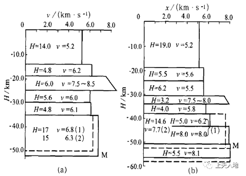 地球物理學(xué)在20世紀(jì)中,特別是在中、末葉以來發(fā)展迅猛,這是由于地球物理和人類繁衍、生息,科學(xué)技術(shù)及社會(huì)經(jīng)濟(jì)的高速發(fā)展所需要更多的資源和能源息息相關(guān)。 人類認(rèn)識(shí)生活和生存的環(huán)境和空間,探索可持續(xù)發(fā)展問題,減輕自然災(zāi)害的影響,必須深化對地球的認(rèn)識(shí)。另外,各國國防與國家權(quán)益也需要地球物理科學(xué)技術(shù)的支持。 20世紀(jì),特別新中國成立70多年來地球物理最突出的成就主要表現(xiàn)在三個(gè)方面:一是,地球內(nèi)部圈層結(jié)構(gòu)研究取得了突破。二是,板塊構(gòu)造與動(dòng)力力學(xué)研究取得了重要進(jìn)展。三是,地球物理應(yīng)用技術(shù)推進(jìn)了資源與能源的勘探和空間特殊環(huán)境的利用。 地球內(nèi)部圈層結(jié)構(gòu)是20世紀(jì)以來固體地球物理學(xué)最為重要的理論基礎(chǔ)及研究成果。依其介質(zhì)的物理學(xué)與力學(xué)屬性或流變學(xué)特征確證了地球內(nèi)部的圈層結(jié)構(gòu),即地殼,上地幔,過渡帶,下地幔,外核和內(nèi)核;或巖石圈,軟流圈,中圈,流體和固體(圖1)。地球物理學(xué)在地球內(nèi)部結(jié)構(gòu)對地球科學(xué)的發(fā)展做出了重要貢獻(xiàn)。 圖1 地球內(nèi)部結(jié)構(gòu) 新中國成立70多年以來,黨和國家特別重視地球物理科學(xué)和技術(shù)發(fā)展。在地球物理基礎(chǔ)理論研究和發(fā)展取得了重大成果。我國的地球物理學(xué)家們在人工源深部地震探測和地震面波與體波以及核爆炸激發(fā)地震波場的深部信息的應(yīng)用等方面取得了豐碩成果,發(fā)現(xiàn)復(fù)雜地殼與上地幔為精細(xì)的層、塊結(jié)構(gòu)(沉積蓋層、結(jié)晶基底、地殼低速層、Moho界面起伏、大型滑脫等)。同時(shí)提出,在地殼中不僅存在著低速層,而且還存在著高速梯度夾層和不同產(chǎn)狀的斷裂。發(fā)現(xiàn)了特異深部結(jié)構(gòu)及分區(qū),提出了殼、幔的層塊結(jié)構(gòu)和物質(zhì)組成模型。圖2是我國地球物理學(xué)家曾融生團(tuán)隊(duì)研究我國西北地殼和上地幔精細(xì)結(jié)構(gòu)成果。我國地球物理研究成果得到世界地球科學(xué)界的重視,特別是我國組織兩次大型西藏科學(xué)考察,對于認(rèn)識(shí)地球內(nèi)部結(jié)構(gòu)演化有許多重大發(fā)現(xiàn)。這些發(fā)現(xiàn)都是中國科學(xué)家對世界的貢獻(xiàn)。 圖2 中國西北部分地區(qū)地殼與上地幔頂部的精細(xì)速度結(jié)構(gòu)(據(jù)曾融生,1984) (a)甘肅景泰地區(qū)的地殼結(jié)構(gòu)平均模型;(b)青海柴達(dá)木盆地的地殼結(jié)構(gòu)平均模型 |