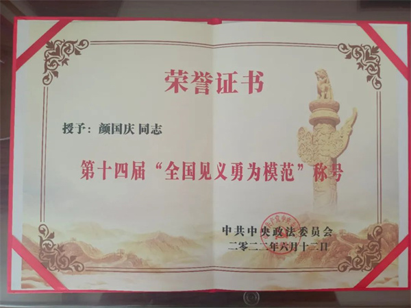 漳州籍現(xiàn)役軍人顏國慶榮膺第十四屆“全國見義勇為模范”稱號