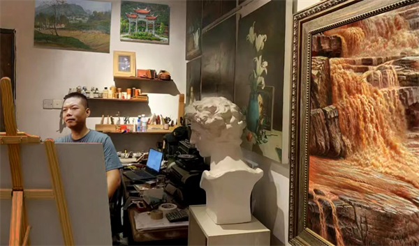 在莆田市涵江區(qū)涵東街道鋪尾社區(qū)“黨建+”鄰里中心的一個(gè)工作畫室里,陳列著一幅幅色彩生動(dòng)的油畫作品。畫室的主人是一名退役軍人,他就是吳漢飛。 吳漢飛,福建省美術(shù)家協(xié)會(huì)會(huì)員,1980年出生于福建莆田,1999年光榮入伍,2001年加入中國(guó)共產(chǎn)黨,自幼酷愛繪畫,曾就學(xué)于首都師范大學(xué)美術(shù)學(xué)院,師承博士生導(dǎo)師尚揚(yáng)、劉孔喜等名師,他致力于古典油畫創(chuàng)作并受火熱軍營(yíng)的熏陶,形成了色彩厚重、筆觸細(xì)膩、畫風(fēng)豪放的繪畫風(fēng)格。 多年的創(chuàng)作迎來碩果累累。吳漢飛的作品曾多次參加軍內(nèi)外展覽并多次獲獎(jiǎng),深受軍內(nèi)外各界美術(shù)的一致好評(píng),多次受到部隊(duì)領(lǐng)導(dǎo)贊賞并曾榮立年度三等功,其簡(jiǎn)歷福建電視臺(tái)也曾對(duì)此報(bào)道過。 作為新時(shí)代的一名黨員退役軍人,一份責(zé)任,一份執(zhí)著,吳漢飛沒有把退役后的創(chuàng)業(yè)就業(yè)當(dāng)成國(guó)家的負(fù)擔(dān),而是把莆仙文化和軍隊(duì)藝術(shù)傳承當(dāng)成了自己的事業(yè),以油畫的繪畫語言描繪出從軍時(shí)期的軍旅生活,用自己的青春、軍人的責(zé)任譜寫了一曲投身文化事業(yè)的藝術(shù)人生,實(shí)現(xiàn)了一名退役軍人的社會(huì)責(zé)任。 在涵東街道鋪尾社區(qū)“黨建+”鄰里中心,吳漢飛利用業(yè)余的時(shí)間教社區(qū)孩子創(chuàng)作,通過軍營(yíng)油畫讓孩子學(xué)會(huì)自立自強(qiáng),樹立遠(yuǎn)大目標(biāo),培養(yǎng)積極健康心態(tài),做到寓教于樂,實(shí)現(xiàn)在“畫”中“學(xué)”。 “鐵打的營(yíng)盤流水的兵·無悔青春”——這是涵東街道鋪尾社區(qū)青年退役軍人、社區(qū)畫家吳漢飛的座右銘,也體現(xiàn)了他對(duì)軍旅生活夯實(shí)厚重的傾注。 |