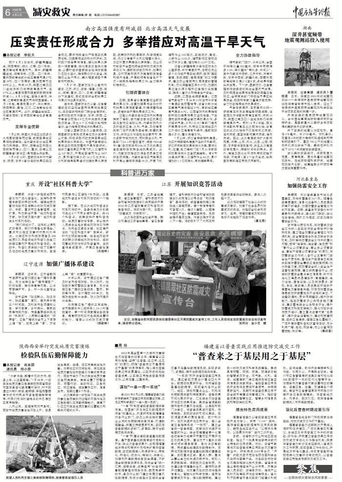 2022年是全國第一次自然災害綜合風險普查的收官之年,福建省以應用為準繩,堅持“邊普查、邊應用、邊見效”的原則,明確“普查來之于基層用之于基層”的思想導向,精心謀劃普查成果應用場景建設,以實際成效檢驗普查成果,以實踐應用推進普查后續(xù)工作,以用促建、以建保用。 謀劃“一單一庫一系統(tǒng)” 自2021年8月以來,福建省普查辦組織專家編制了普查應用系統(tǒng)建設方案,立足應用科學謀劃“一單一庫一系統(tǒng)”。 “一單”即制定省級普查數(shù)據(jù)共享清單。在國家“評估與區(qū)劃數(shù)據(jù)需求清單”的基礎(chǔ)上,抓緊研究制定福建省內(nèi)各行業(yè)部門、涉及公共設施的重點企業(yè)間的長期數(shù)據(jù)共享清單,打通數(shù)據(jù)壁壘,并建立持續(xù)更新機制,實現(xiàn)后普查數(shù)據(jù)的多部門、多層級、跨平臺數(shù)據(jù)交換與共享。 “一庫”即建設省級普查基礎(chǔ)數(shù)據(jù)庫?;趪一A(chǔ)數(shù)據(jù)庫進行定制化開發(fā),除此次普查成果外,還根據(jù)福建地方特點和需求補充相關(guān)擴展非普查數(shù)據(jù),實現(xiàn)數(shù)據(jù)接入來源多樣化、特色化、標準化、動態(tài)化、精細化、共享化,加強和開通數(shù)據(jù)共享安全渠道,不斷健全數(shù)據(jù)庫資源體系,形成全省“統(tǒng)一匯聚、按需共享、成果適用”的自然災害數(shù)據(jù)管理與服務體系,鼓勵有條件的市、縣及行業(yè)部門建立專屬災害風險數(shù)據(jù)庫,形成分類型分區(qū)域的全省災害風險基礎(chǔ)數(shù)據(jù)庫系統(tǒng),實現(xiàn)多部門、多層級、跨平臺數(shù)據(jù)交換與共享。 “一系統(tǒng)”即開發(fā)省級普查應用系統(tǒng)。通過省級頂層設計建設四大平臺。數(shù)據(jù)動態(tài)更新平臺,依托省級普查基礎(chǔ)數(shù)據(jù)庫,實現(xiàn)省內(nèi)各行業(yè)部門、地區(qū)、院校和重點企業(yè)、機構(gòu)間長期數(shù)據(jù)共享和持續(xù)更新;普查成果可視化展示平臺,匯總綜合風險普查評估區(qū)劃成果清單,集成全省調(diào)查數(shù)據(jù)和自然災害風險地圖,以縣級和部門為單位,將普查成果進行圖形、符號轉(zhuǎn)換,實現(xiàn)動態(tài)的可視化表達,實現(xiàn)調(diào)查成果的屬性查閱、統(tǒng)計和分析;臨災快速評估應用平臺,接入全省應急指揮系統(tǒng)“一張網(wǎng)”,建立全省統(tǒng)一普查底圖,支撐臨災快速評估掛圖式作業(yè),結(jié)合在福建省第十七屆運動會舉辦地南平市建陽區(qū)開展評估區(qū)劃成果應用,建設優(yōu)于5厘米分辨率的傾斜攝影影像、激光點云等數(shù)據(jù),完成基礎(chǔ)地理實體數(shù)據(jù)制作,支持臨災數(shù)據(jù)與普查基礎(chǔ)數(shù)據(jù)的建模運算,實現(xiàn)重點區(qū)域、重點人群、重點企事業(yè)單位的快速災損評估,規(guī)劃人員疏散路線、調(diào)配救災應急物質(zhì),優(yōu)先建立影響福建的臺風、暴雨和洪澇評估模型,為災害風險的防與治提供信息化、智能化的科學支撐;適用性智慧減災平臺,強化數(shù)據(jù)賦能,建立統(tǒng)一的防災減災科學系統(tǒng)模型,集成具有預警、預報、預案、預演多功能的智慧減災平臺,向氣象、水利、海洋、地震等部門單位提供在線應急空間信息云共享服務。省級普查應用系統(tǒng)開發(fā)后將免費供市縣使用,并持續(xù)更新迭代,后期可將普查成果應用于安全城市等建設與管理工作,推動普查成果在智慧社區(qū)、智慧鄉(xiāng)村信息系統(tǒng)和移動端的應用。 推出特色應用成果 福建省普查辦以省級普查應用系統(tǒng)開發(fā)為核心,采用“1+N”架構(gòu),提供省級基礎(chǔ)數(shù)據(jù)庫和應用系統(tǒng)接口,鼓勵各地區(qū)各行業(yè)“以需求為導向、以場景為內(nèi)核”進行二次開發(fā)。 目前,該省部分行業(yè)和地區(qū)因地制宜,推出了一批具有地域特點或行業(yè)特色的應用成果。例如,該省氣象局將風險普查成果應用到臺風災害防御當中,研制完成2109號臺風“盧碧”的致災因子危險性預估圖和綜合風險預估圖等產(chǎn)品,為各級政府防御臺風提供精細化技術(shù)支撐;省海洋與漁業(yè)局根據(jù)海洋產(chǎn)業(yè)分布帶,開展涉海人員活動、涉海承災體、海洋產(chǎn)業(yè)實時風險等級評估咨詢等服務;省水利廳統(tǒng)籌省市縣三級部門組建水利規(guī)劃、空間地理、軟件開發(fā)等跨學科工作組,協(xié)同辦公,開展聯(lián)合攻關(guān);福州市應急管理局研發(fā)集三維可視化與GIS數(shù)據(jù)于一體的現(xiàn)代化智慧平臺,依據(jù)自然災害普查對象設置相應的模塊,涵蓋應急、住建、交通等各個領(lǐng)域;南安市應急管理局與市網(wǎng)格辦對接開發(fā)應急救援模塊,將普查地災點、內(nèi)澇點、救災隊伍、物資儲備等數(shù)據(jù)納入市網(wǎng)格數(shù)據(jù)庫。 強化后普查時期政策引導 福建省各地各部門積極探索總結(jié)經(jīng)驗,為防災減災工作打下基礎(chǔ)。 福建省普查辦近期數(shù)次開展線上調(diào)研和征求意見,廣泛收集意見和建議,總結(jié)近三年來普查工作中的好經(jīng)驗、好作法,研究建立普查成果應用與防災減災常態(tài)化工作融合機制,探索將省普查辦部分任務延續(xù)納入省減災辦工作職責,實現(xiàn)普查工作長效化,開展地方標準