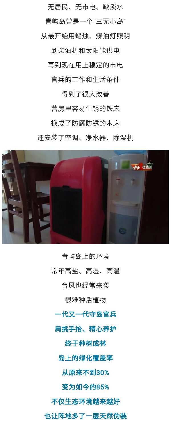 青嶼島 位于福建東南沿海 面積僅0.06平方公里 “海島鋼四連”就駐守在 這個(gè)“巴掌大”的島上 ↓↓↓ 微型靶場(chǎng)、迷你訓(xùn)練場(chǎng) 沒(méi)有場(chǎng)地就創(chuàng)造條件訓(xùn)練 “風(fēng)無(wú)三日停,地?zé)o三尺平” 在青嶼島上 一片平坦的開(kāi)闊地都沒(méi)有 最長(zhǎng)的直道僅80米長(zhǎng) 官兵們只能因地制宜 開(kāi)辟了一條環(huán)形跑道 全長(zhǎng)只有800米 每天武裝5公里 官兵們要爬386個(gè)臺(tái)階 穿越300多米的坑道塹壕 沖刺6個(gè)大小陡坡 體力消耗是平地的2到3倍 縮小版的“400米障礙場(chǎng)” 前后只有80米 官兵只能繞著圈跑 島上建起了微型靶場(chǎng) 官兵們把胸環(huán)靶縮小5倍 再進(jìn)行據(jù)槍瞄準(zhǔn) 還把屋頂改造成了健身房 風(fēng)景優(yōu)美的一線天 也是官兵的訓(xùn)練場(chǎng)地 64級(jí)臺(tái)階 寬度只有60多厘米 坡度大約60度 官兵每天進(jìn)行蛙跳訓(xùn)練 鉚在前沿,練在前列 為了守好這座島 官兵結(jié)合小島的地形特點(diǎn) 日復(fù)一日,堅(jiān)持訓(xùn)練 看到島上的戰(zhàn)斗遺跡 就更堅(jiān)定守島信念 把青春獻(xiàn)給這座小島 用堅(jiān)守改變?cè)?jīng)荒蕪的島礁 為守島官兵們點(diǎn)贊! |