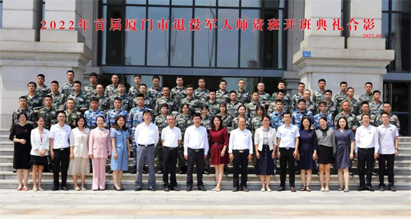 近日,廈門市退役軍人事務(wù)局舉辦2022年首屆廈門市退役軍人師資班開班典禮,60名來自各行各業(yè)的優(yōu)秀退役軍人,接下來將開啟為期一年的免費(fèi)全日制脫產(chǎn)學(xué)習(xí)。市委編辦、市退役軍人事務(wù)局、市教育局、市人社局和各區(qū)退役軍人事務(wù)局領(lǐng)導(dǎo),集美大學(xué)師范學(xué)院領(lǐng)導(dǎo)班子成員以及培訓(xùn)班全體學(xué)員出席開班典禮。 今年,廈門市率先出臺(tái)了退役軍人教師培養(yǎng)方案,率先與著名高校集美大學(xué)合作成立退役軍人學(xué)院,又率先舉辦退役軍人師資培訓(xùn)班。三個(gè)率先是廈門深入貫徹落實(shí)習(xí)近平總書記關(guān)于 “讓軍人成為全社會(huì)尊崇的職業(yè)”“讓教師成為讓人羨慕的職業(yè)”重要論述,落實(shí)黨中央、國務(wù)院關(guān)于退役軍人就業(yè)創(chuàng)業(yè)工作部署,積極探索“兵教師”培訓(xùn)培養(yǎng)新路子,加大退役軍人職業(yè)技能培養(yǎng)力度,推進(jìn)退役軍人高質(zhì)量就業(yè)的創(chuàng)新舉措。 開班典禮結(jié)束后,集美大學(xué)校長李清彪教授為學(xué)員上“開班第一課”,勉勵(lì)全體學(xué)員牢記囑托,堅(jiān)守初心,以德立身,甘當(dāng)人梯,誠以致誠,毅以達(dá)毅, 努力成為新時(shí)代“四有”好老師! 培訓(xùn)班學(xué)員代表原月表示,將珍惜難得機(jī)會(huì),端正學(xué)習(xí)態(tài)度,發(fā)揚(yáng)部隊(duì)“特別能吃苦、特別能戰(zhàn)斗”優(yōu)良作風(fēng),加強(qiáng)自我教育、自我管理和自我發(fā)展,盡快完成從退役軍人到“兵教師”的華麗轉(zhuǎn)身,堅(jiān)決做到“綠色軍營建功勛,三尺講臺(tái)續(xù)輝煌” 。 會(huì)后,與會(huì)領(lǐng)導(dǎo)、老師與培訓(xùn)班全體學(xué)員合影留念。 |