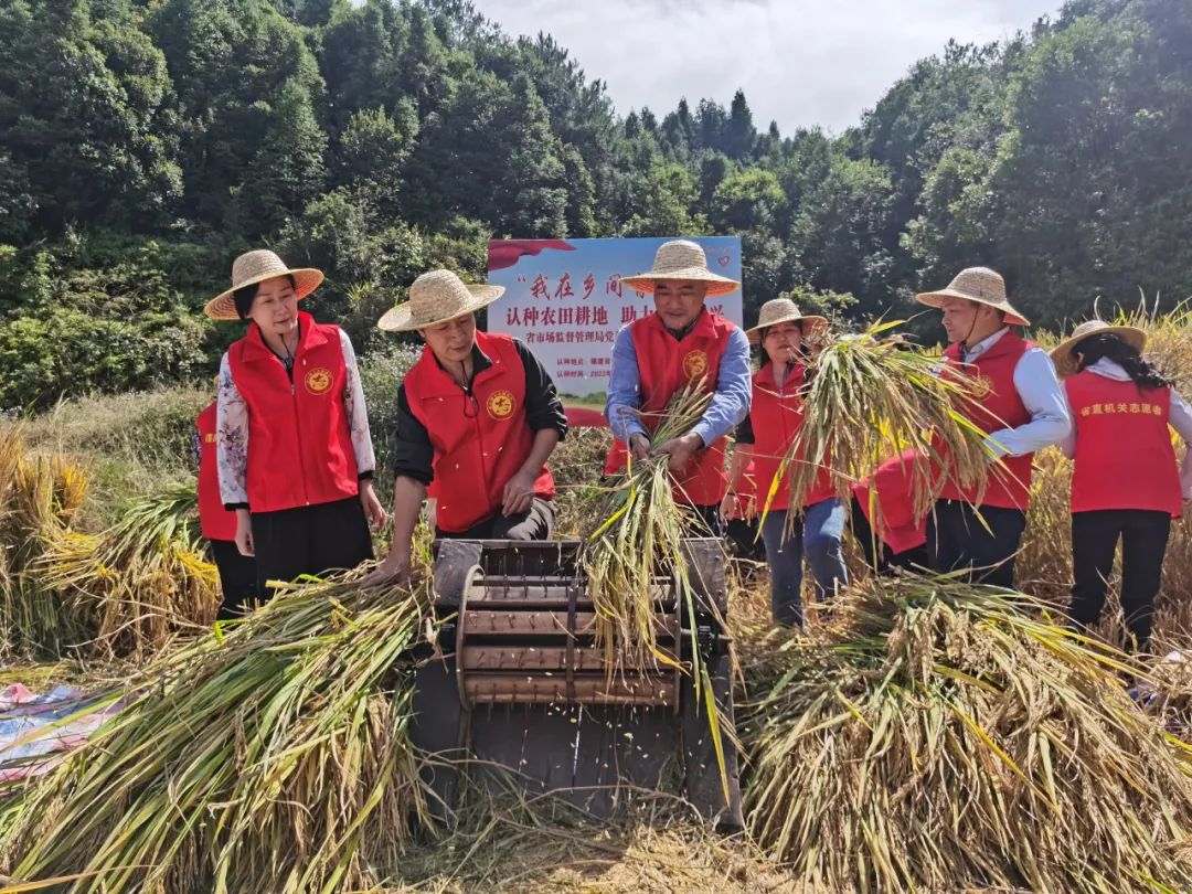 沃野生金,稻菽飄香 為積極響應(yīng)福建省委省直機(jī)關(guān)工委倡議,10月10日,福建省市場(chǎng)監(jiān)管局黨組書(shū)記、局長(zhǎng)黃培惠帶領(lǐng)30多名黨員干部前往古田縣吉巷鄉(xiāng)薛后村,開(kāi)展“我在鄉(xiāng)間有畝田”體驗(yàn)農(nóng)耕金秋割稻活動(dòng),在活動(dòng)中錘煉純潔黨性,守護(hù)糧食安全。 田間地頭,胸懷“國(guó)之大者” 黨員干部們干勁十足地走進(jìn)田間地頭,擼起袖子,手持鐮刀,揮灑汗水,或嫻熟、或生澀地忙碌著。割水稻、脫谷粒、扎稻草,親身體驗(yàn)農(nóng)耕勞作的不易,身體力行助力糧食豐收,從勞動(dòng)中體會(huì)農(nóng)民的種糧艱辛,在稻田里感受農(nóng)民的豐收喜悅。大家深刻領(lǐng)悟習(xí)近平總書(shū)記“中國(guó)人的飯碗任何時(shí)候都要牢牢端在自己的手上”的殷切囑托,深刻認(rèn)識(shí)糧食安全對(duì)于確保經(jīng)濟(jì)安全和社會(huì)穩(wěn)定的極端重要性,紛紛表示,今后要進(jìn)一步落細(xì)落實(shí)認(rèn)籌活動(dòng)的各項(xiàng)任務(wù),用實(shí)際行動(dòng)踐行“保障糧食安全,助力鄉(xiāng)村振興”,為全面推進(jìn)鄉(xiāng)村振興貢獻(xiàn)市場(chǎng)監(jiān)管力量。 本次認(rèn)籌認(rèn)種活動(dòng),福建省市場(chǎng)監(jiān)管局黨組高度重視,局領(lǐng)導(dǎo)帶頭參與,機(jī)關(guān)、直屬單位黨員干部職工積極響應(yīng),集體認(rèn)籌認(rèn)種古田縣長(zhǎng)嶺村、薛后村、西溪村50多畝拋荒耕地,推動(dòng)復(fù)耕復(fù)種,助力糧食安全和鄉(xiāng)村振興。 掛鉤幫扶,助力鄉(xiāng)村振興 福建省市場(chǎng)監(jiān)管局始終堅(jiān)持文明單位示范帶動(dòng)作用,自組建以來(lái)向古田縣派駐多名駐村干部支持掛鉤幫扶鄉(xiāng)村建設(shè),每年春節(jié)前夕慰問(wèn)困難黨員群眾,通過(guò)增加駐地村項(xiàng)目幫扶資金、加大市場(chǎng)監(jiān)管職能指導(dǎo)幫扶力度、加大消費(fèi)幫扶力度等措施鞏固拓展脫貧攻堅(jiān)成果,助力鄉(xiāng)村振興。 |