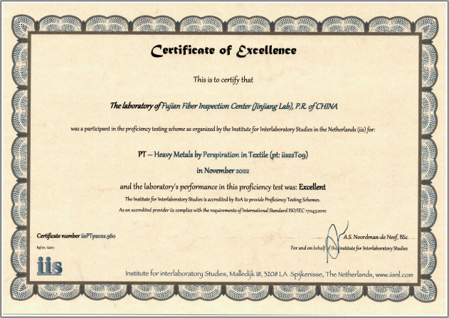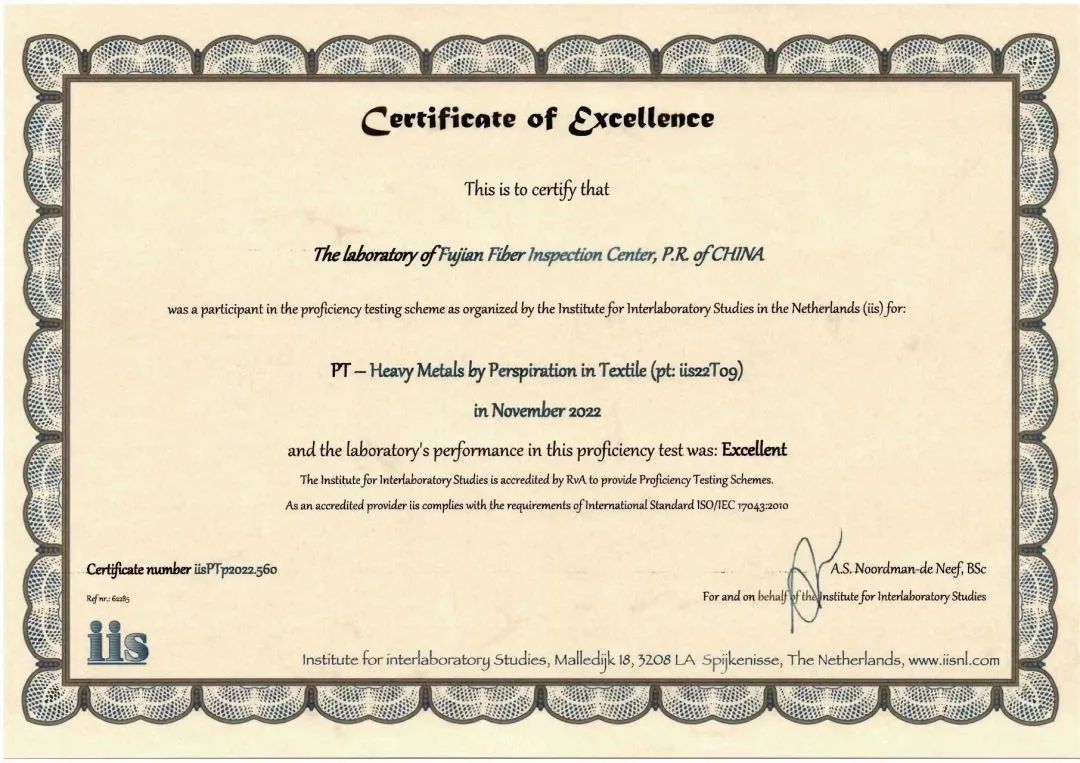 福建省纖檢中心參加荷蘭IIS國(guó)際能力驗(yàn)證獲得“滿意”結(jié)果