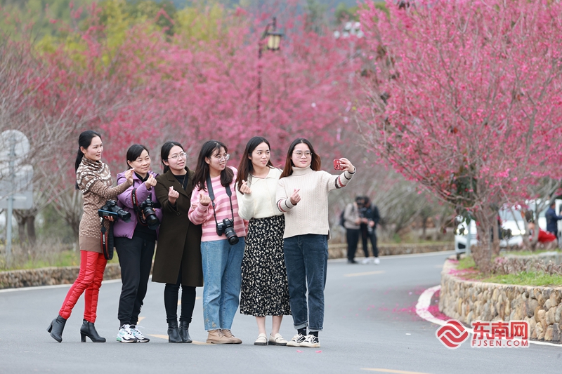 艷麗的櫻花吸引了許多攝影愛好者前來取景。陳英杰 攝 東南網(wǎng)2月15日訊(通訊員 陳英杰)初春的閩南大地,一派勃勃生機。日前,德化縣“花開瓷都·‘櫻’你浪漫”櫻花節(jié)活動在雷峰鎮(zhèn)潘祠村櫻花園舉辦, 千畝近100萬株福建山櫻花優(yōu)雅綻放、競相爭艷,宛若“群櫻薈萃”,成為雷峰鎮(zhèn)一道獨特的風(fēng)景線,吸引眾多游客爭相來打卡體驗。