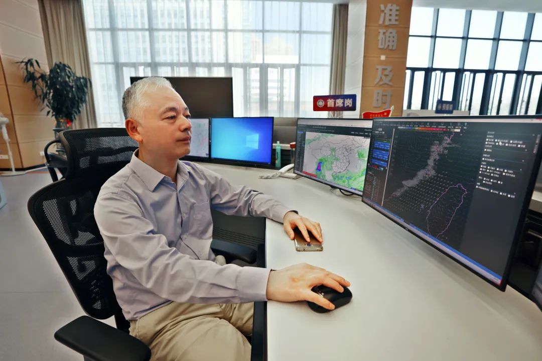 雖然只有57歲,但福建省氣象臺副臺長、正高級工程師劉銘已是滿頭銀絲,在預(yù)報(bào)員中格外顯眼。“劉臺天天都在預(yù)報(bào)大廳忙碌,‘存在感’特別強(qiáng),”身邊的同事們笑著說,“他的白頭發(fā)就是氣象臺的一道風(fēng)景線?!?/p> 自1987年從山東海洋學(xué)院(現(xiàn)中國海洋大學(xué))畢業(yè)、參加工作以來,劉銘已經(jīng)在省氣象臺工作了36年。從預(yù)報(bào)員到專業(yè)臺副臺長、短時(shí)臨近預(yù)報(bào)科科長,再到省氣象臺首席預(yù)報(bào)員、中國氣象局首席預(yù)報(bào)員,衣襟染霜華,青絲成白發(fā),劉銘始終兢兢業(yè)業(yè),長期深耕預(yù)報(bào)服務(wù)業(yè)務(wù),把青春和汗水都獻(xiàn)給了福建氣象事業(yè)。 業(yè)務(wù)專精,技術(shù)過硬