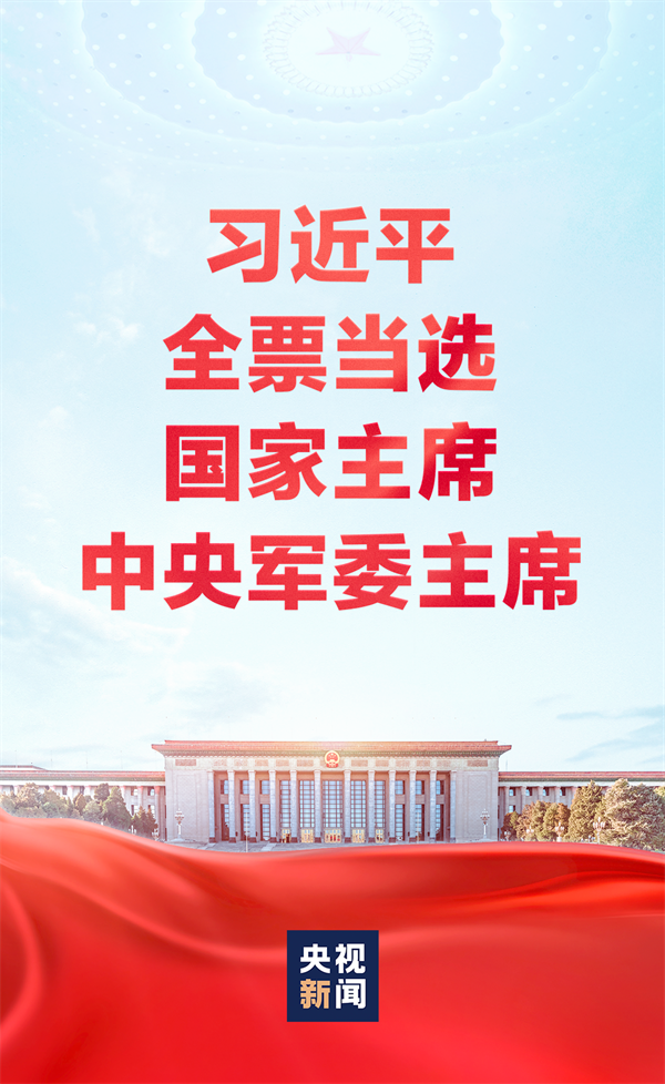 習近平全票當選為中華人民共和國主席、中華人民共和國中央軍事委員會主席