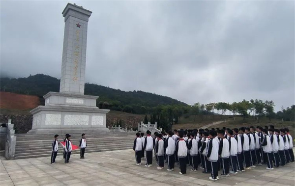 郁郁青柏掩忠骨,烈烈英魂訴長風。3月28日上午,由三明市明溪縣退役軍人事務局、明溪縣委文明辦、明溪縣教育局主辦的 “百園千校清明祭英烈”活動在明溪縣革命紀念園烈士集中安葬區(qū)舉行,師生代表、退役軍人代表、機關單位干部等120多人參加了活動。 大家懷著崇敬的心情打掃了紀念廣場、烈士集中安葬區(qū),擦拭了烈士墓碑、烈士英名墻等紀念設施。隨后,全體人員整齊列隊,莊嚴肅立,鞠躬默哀,并瞻仰烈士墓、烈士英名墻和革命英雄紀念碑,依次將鮮花擺在紀念設施前寄托哀思。 最后,學生們重溫了入隊誓詞,并在講解員的帶領下,認真聆聽了明溪英烈故事,參觀了革命紀念館,接受愛國主義教育。 |