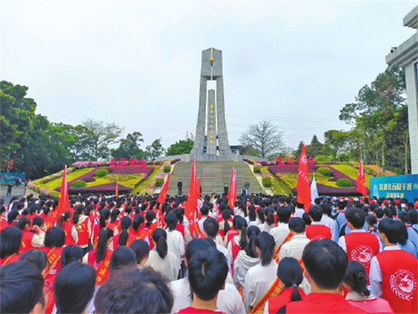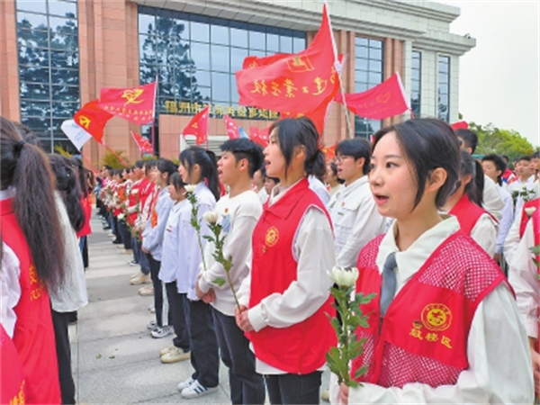 清明祭英烈,詩文寄哀思。4月1日,崇尚·2023清明祭英烈——“回響”紅色經(jīng)典誦讀活動在文林山革命英烈紀念園舉行,來自福州市20多所院校的1000多名師生及社會志愿服務(wù)團隊成員參加?;顒佑筛V菔型艘圮娙耸聞?wù)局主辦,文林山革命英烈紀念園、鼓樓區(qū)文明辦承辦。 千余名學(xué)生和志愿者參加悼念活動 上午9時,文林山革命英烈紀念園內(nèi),手持白花的參與者整齊列隊,表情莊嚴肅穆。“當(dāng)亦樂犧牲吾身與汝身之福利,為天下人謀永福也!”“就讓你們的槍聲,成為我們婚禮的禮炮吧!”“憑將一掬丹心在,泉下差堪對我翁?!薄顒娱_始,來自福州大學(xué)至誠學(xué)院人文藝術(shù)系的同學(xué)們身著表演服,在紀念碑前的臺階上進行沉浸式角色扮演。他們先后朗誦林覺民《與妻書》片段、徐琛和余哲貞烈士犧牲前留言以及吳石將軍的絕命詩等先烈經(jīng)典名言和詩句。 飽滿的激情和抑揚頓挫的語調(diào),點燃了全場熱情,在場1000多名參與者一起跟誦,通過革命先烈的名言,追憶他們的豐功偉績。鏗鏘有力、飽含深情的話語聲,回蕩在文林山的松林間。 學(xué)子們朗誦詩文 “會稽恥,終須雪。楚三戶,教秦滅。愿英靈,永保金甌無缺……”領(lǐng)誦人中,一名身著軍裝、鶴發(fā)童顏的老人格外引人注目。據(jù)了解,他是福州市退役軍人事務(wù)局上海西軍休所軍休干部姜膠生?!拔依收b的是郁達夫1937年9月在福州創(chuàng)作的《滿江紅》,是紀念民族英雄戚繼光的。朗誦這首有著特別意義的作品,不但是為了紀念民族英雄戚繼光,也是為了傳承不甘屈辱、同仇敵愾的精神,這能更好激發(fā)同學(xué)們的愛國熱情?!?/p> 來自福州商貿(mào)職專的馬杏妍和她的幾名同學(xué)在朗誦詩文時格外專注?!拔以跅顦蚵妨钟X民故居看過《與妻書》的片段,當(dāng)時就十分感動。今天在這里朗誦出來時,更加觸動心靈。今天的這場活動,是一場洗滌靈魂的課程,讓我感受到先烈們壯麗的青春與無悔的付出?!?/p> “當(dāng)我朗誦吳石將軍的絕命詩‘憑將一掬丹心在,泉下差堪對我翁’時,我一下子覺得,和革命先烈當(dāng)年的艱難處境相比,如今生活中的一些困難都不值一提了。先烈的犧牲不但為我們創(chuàng)造了更好的生活,也給我們留下了寶貴的精神遺產(chǎn)?!爆F(xiàn)場領(lǐng)誦的福大至誠學(xué)院人文藝術(shù)系學(xué)生雷博軒說。 福州市退役軍人事務(wù)局相關(guān)工作人員表示,清明是慎終追遠的日子,在這樣特別的時節(jié),組織共建單位及各學(xué)校學(xué)生在文林山革命英烈紀念園,集體朗誦先烈的詩文和名言,既是為了紀念緬懷他們的豐功偉績,也是為了勉勵后人、傳承弘揚革命精神。 作為弘揚革命英烈精神的紅色陣地,每年清明時節(jié),文林山革命英烈紀念園都會舉辦各種形式的緬懷英烈系列活動?!拔覀円蚕M迕鱽磉@里祭掃的群眾,通過感受豐富多彩的紅色文化、參觀革命烈士事跡陳列館等,重溫紅色歷史、傳承英烈精神、賡續(xù)紅色血脈?!奔o念園工作人員說。 |