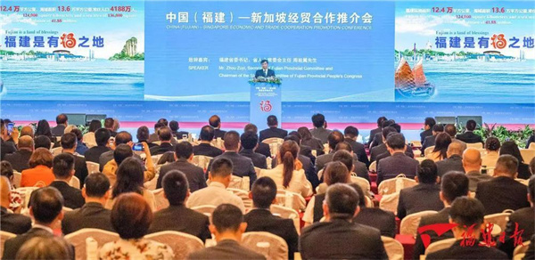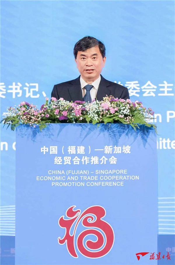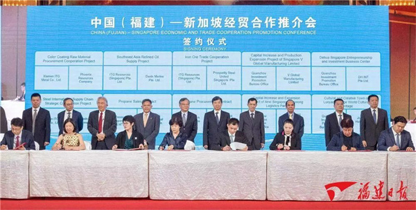 5月15日,省委書記、省人大常委會(huì)主任周祖翼率福建省代表團(tuán)抵達(dá)新加坡開始訪問,與當(dāng)?shù)亻}籍鄉(xiāng)親暢敘情誼,與企業(yè)界人士共商發(fā)展,推動(dòng)雙方經(jīng)貿(mào)文化交流合作再上新臺階。 代表團(tuán)在新加坡舉行了中國(福建)—新加坡經(jīng)貿(mào)合作推介會(huì)。推介會(huì)上,有29個(gè)項(xiàng)目進(jìn)行現(xiàn)場簽約,合計(jì)簽約金額746億元人民幣,涉及電力能源、港口物流、基金創(chuàng)投、汽車制造、酒店及綜合體等領(lǐng)域。 推介會(huì)現(xiàn)場 周祖翼在推介會(huì)上作主旨講話 簽約儀式現(xiàn)場 |