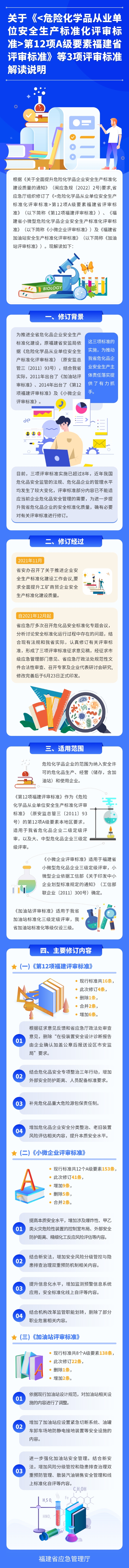 一圖讀懂關(guān)于《<危險(xiǎn)化學(xué)品從業(yè)單位安全生產(chǎn)標(biāo)準(zhǔn)化評(píng)審標(biāo)準(zhǔn)>第12項(xiàng)A級(jí)要素福建省評(píng)審標(biāo)準(zhǔn)》等3項(xiàng)評(píng)審標(biāo)準(zhǔn)
