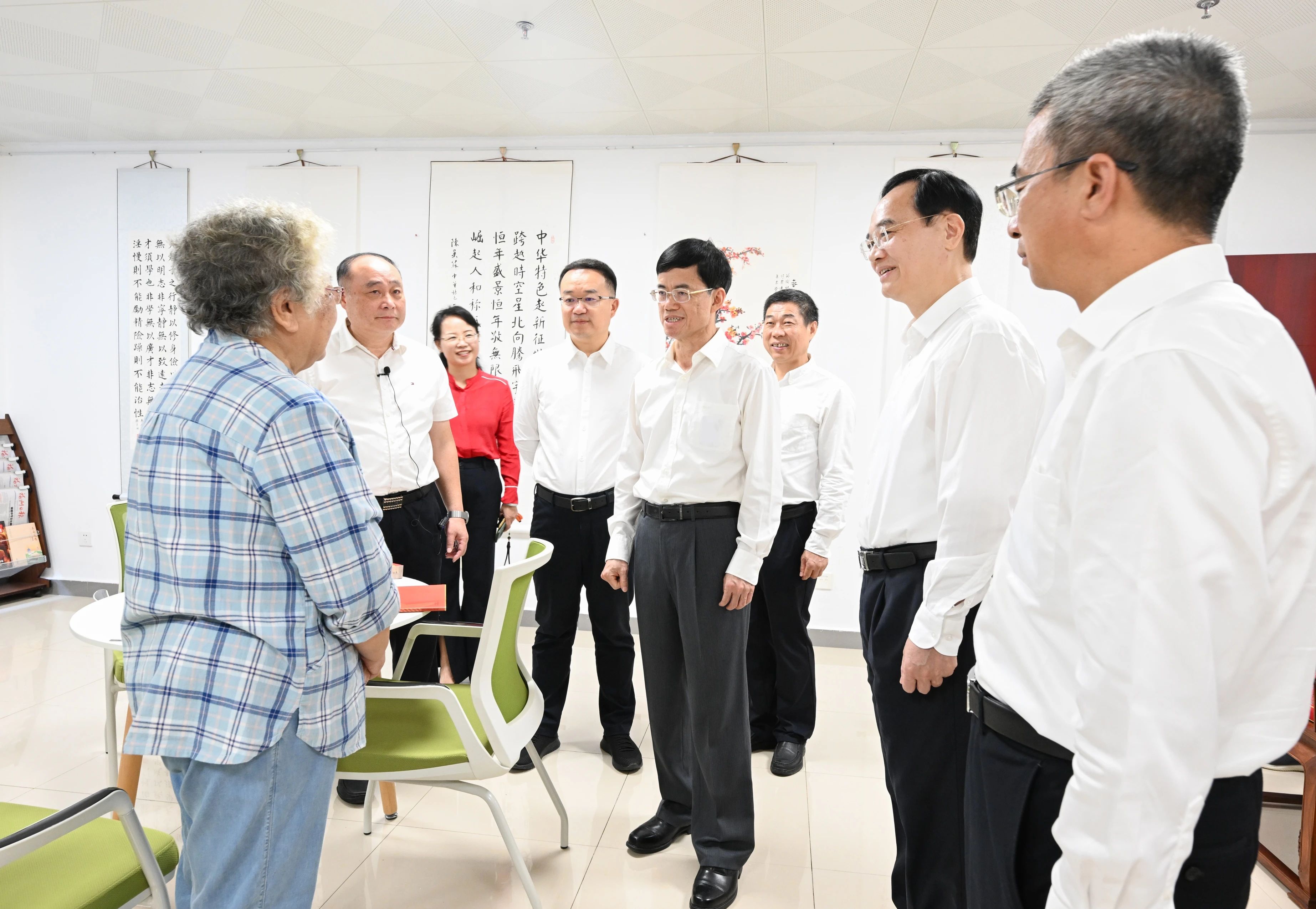 10月8日上午,退役軍人事務(wù)部黨組書(shū)記、部長(zhǎng)裴金佳帶隊(duì)來(lái)榕調(diào)研雙擁、退役軍人工作。福建省委常委、福州市委書(shū)記林寶金,福建省副省長(zhǎng)王金福,省退役軍人事務(wù)廳黨組書(shū)記、廳長(zhǎng)羅慶春等省、市領(lǐng)導(dǎo)以及部隊(duì)相關(guān)領(lǐng)導(dǎo)參加活動(dòng)。 在駐連江某部隊(duì),裴金佳深入了解部隊(duì)光榮歷史,親切慰問(wèn)基層官兵。在福州警備區(qū)黨管武裝(雙擁)展覽館,裴金佳在一幅幅展板前駐足,深入了解習(xí)近平總書(shū)記在榕工作期間抓黨管武裝、雙擁工作的重大理念和重大實(shí)踐。他強(qiáng)調(diào),各級(jí)各有關(guān)部門(mén)要傳承弘揚(yáng)雙擁光榮傳統(tǒng),全力服務(wù)駐地部隊(duì),為部隊(duì)遂行各項(xiàng)任務(wù)提供堅(jiān)實(shí)保障。 在福州市軍休中心,裴金佳聽(tīng)取了福州市退役軍人事務(wù)局黨組書(shū)記、局長(zhǎng)張則銘關(guān)于軍休中心各項(xiàng)工作開(kāi)展情況的介紹。隨后,他分別來(lái)到福州市軍休大學(xué)教室、智慧軍休平臺(tái)數(shù)據(jù)中心、多功能廳、書(shū)畫(huà)院、健身室等場(chǎng)地,與軍休干部親切交流,詳細(xì)了解軍休干部學(xué)習(xí)、培訓(xùn)、健身、娛樂(lè)以及數(shù)字化服務(wù)保障等情況。裴金佳對(duì)福州市退役軍人服務(wù)保障相關(guān)做法表示肯定。他強(qiáng)調(diào),軍休干部為黨和國(guó)家的事業(yè)作出了突出貢獻(xiàn)。各級(jí)各有關(guān)部門(mén)要用心用情做好服務(wù)保障,并充分發(fā)揮軍休干部的優(yōu)勢(shì)特長(zhǎng),引導(dǎo)他們積極投身地方各項(xiàng)事業(yè)中去,為經(jīng)濟(jì)社會(huì)發(fā)展作出更大貢獻(xiàn)。 |