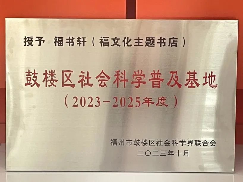 近日,福州市鼓樓區(qū)社會科學界聯(lián)合會授予福書軒(福文化主題書店)“2023-2025年度鼓樓區(qū)社會科學普及基地”。 福書軒將堅持以習近平新時代中國特色社會主義思想為指導,按照《福州市鼓樓區(qū)社會科學普及基地建設(shè)與管理工作制度》要求,結(jié)合自身優(yōu)勢特色,積極開展群眾性、社會性、經(jīng)常性的社會科學普及活動,充分發(fā)揮區(qū)級社會科學普及基地在理論武裝、科學普及、文化傳承中的示范引領(lǐng)作用,為推動鼓樓區(qū)社會科學普及大眾化、社會化、常態(tài)化作出積極貢獻。 |