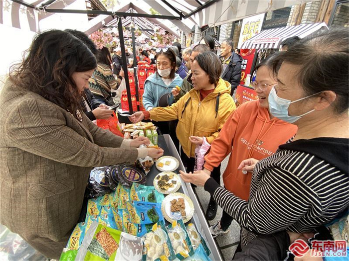 市民在展銷攤位進(jìn)行選購(gòu) 東南網(wǎng)記者 顏財(cái)斌攝 2023年“福見樂(lè)購(gòu) 姐妹鄉(xiāng)伴”巾幗電商直播活動(dòng)啟動(dòng)儀式由福建省婦女聯(lián)合會(huì)主辦,福州市婦女聯(lián)合會(huì)、中共連江縣委、連江縣人民政府、東南網(wǎng)承辦,連江縣婦女聯(lián)合會(huì)、福建省女企業(yè)家協(xié)會(huì)、福州市女企業(yè)家聯(lián)誼會(huì)協(xié)辦。福州市婦聯(lián)、連江縣婦聯(lián)及福州市、連江縣有關(guān)單位領(lǐng)導(dǎo),福州巾幗主播代表、女企業(yè)家、農(nóng)業(yè)生產(chǎn)基地代表等參加活動(dòng)。