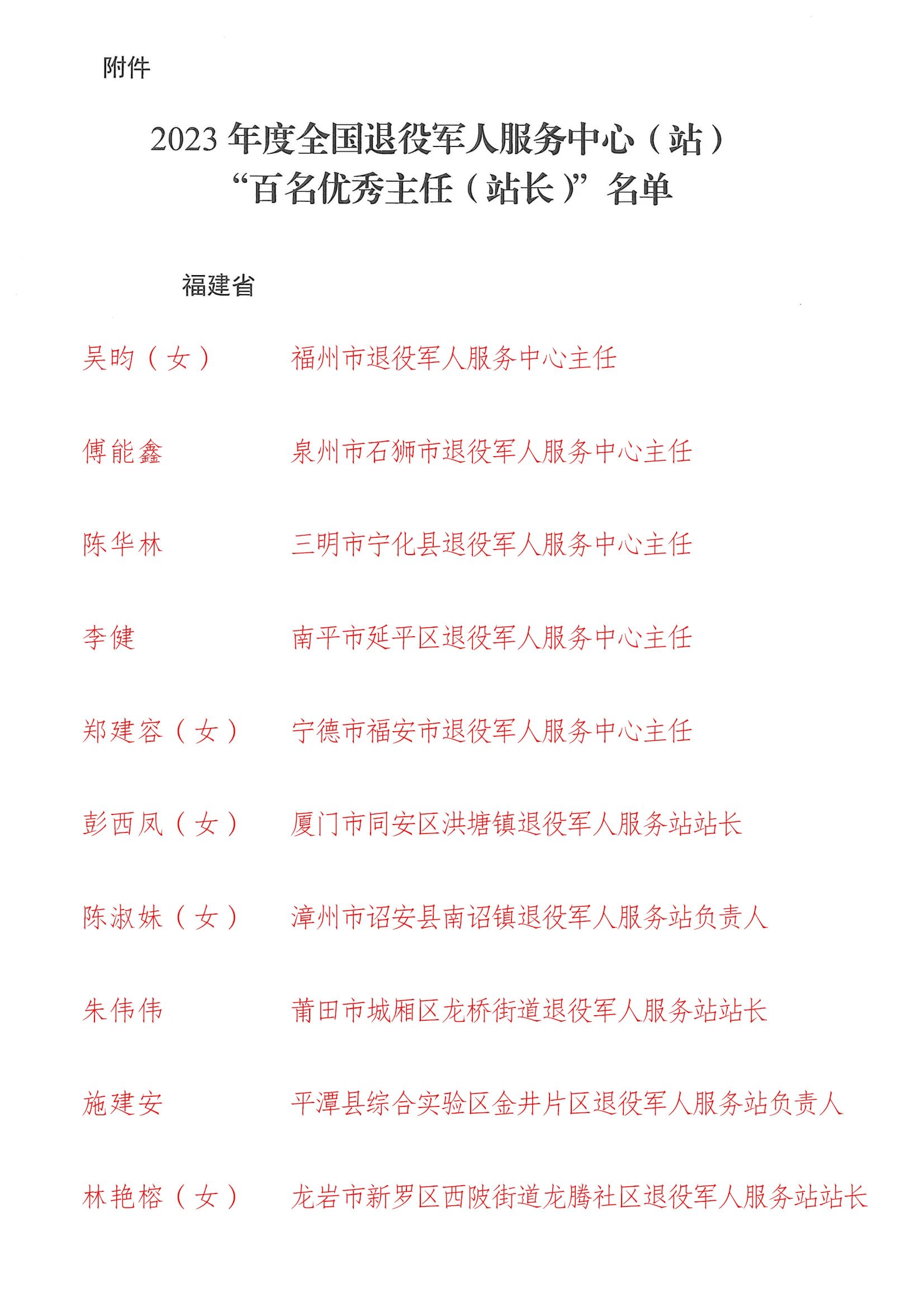 喜訊!我省10人獲評(píng)2023年度全國(guó)退役軍人服務(wù)中心(站)“百名優(yōu)秀主任(站長(zhǎng))”