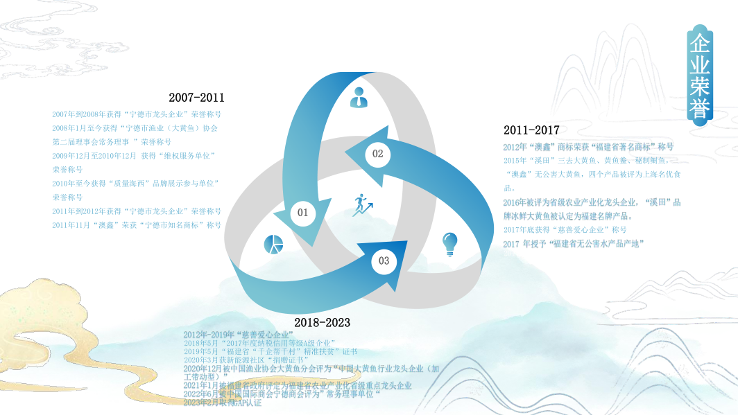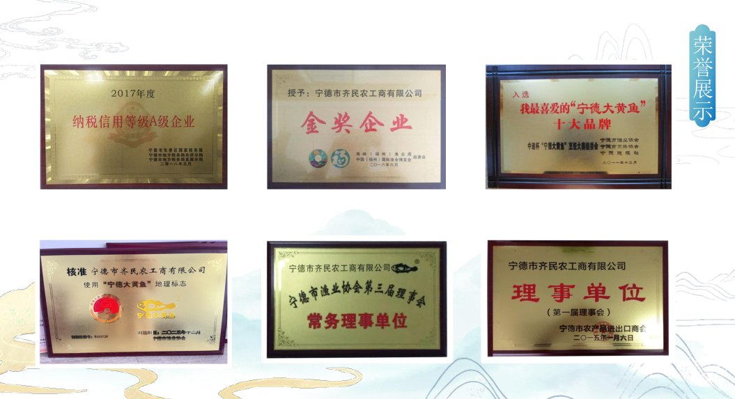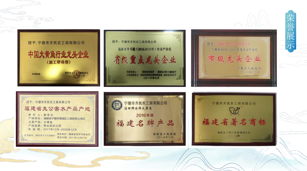 寧德市齊民農(nóng)工商有限公司成立于2006年,是一家以水產(chǎn)品加工為主,育苗、養(yǎng)殖及科研于一體的綜合性省級重點龍頭企業(yè)。公司注冊資本1000萬元,現(xiàn)擁有冷凍加工廠、新型塑膠大黃魚養(yǎng)殖基地、育苗場、漁排等多個固定資產(chǎn)。公司配備育苗、養(yǎng)殖、加工、科研、進出口五大管理部門,在職人員95人。公司生產(chǎn)車間、冷庫均按國際食品法典委員會(CAC)、美國(FDA)等國際標準建造。設備先進、配套齊全,有一條冰鮮產(chǎn)品生產(chǎn)線,兩條冷凍品生產(chǎn)線,一條鹽漬產(chǎn)品生產(chǎn)線和一條干制產(chǎn)品生產(chǎn)線,還有速凍間、冷風干燥間、金屬探測儀及化驗室等。 公司自2006年創(chuàng)建以來,始終堅持以公司以質(zhì)量求生存,以科技求發(fā)展,以誠信拓市場的宗旨,建立了龐大的客戶網(wǎng)絡經(jīng)過十余年的不懈努力,取得了較大的成績。公司先后獲得“中國大黃魚行業(yè)龍頭企業(yè)”、“慈善愛心企業(yè)”、“福建省著名商標”、“福建省農(nóng)業(yè)產(chǎn)業(yè)化龍頭企業(yè)”、“寧德市知名商標”等榮譽稱號。旗下?lián)碛小鞍啮巍?、“溪田”、“黃漁小姐”三個商標,其中“澳鑫”被認定為福建省著名商標,“溪田”被認定為寧德市知名商標,溪田牌冰鮮大黃魚被認定為“2016年度福建名牌產(chǎn)品”。 公司年加工各類冷凍水產(chǎn)品12000多噸,主營產(chǎn)品有大黃魚及大黃魚精加工類鮮、凍水產(chǎn)品。公司以科技興漁為動力、振興“三農(nóng)”為己任,與時俱進,開拓創(chuàng)新。