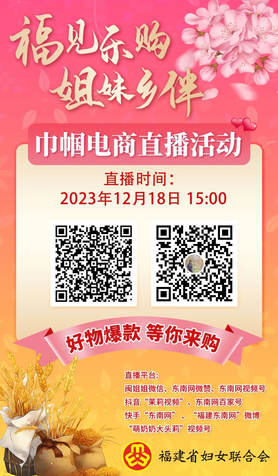 12月18日,福建省巾幗電商直播帶貨活動帶您走進中國首個美食地標城市——寧德福鼎,共同探秘“美食圣地”的山海之味,掃描下方二維碼進入直播間,一起來盤點舌尖上的寧德滋味~