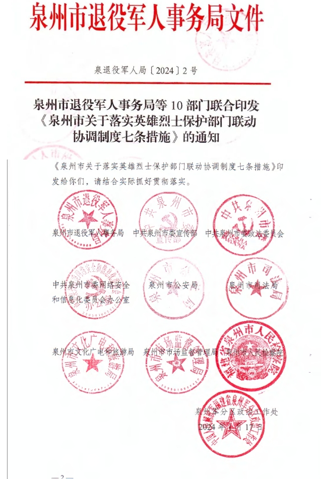 泉州10部門聯(lián)合出臺(tái)英雄烈士保護(hù)聯(lián)動(dòng)協(xié)調(diào)新措施