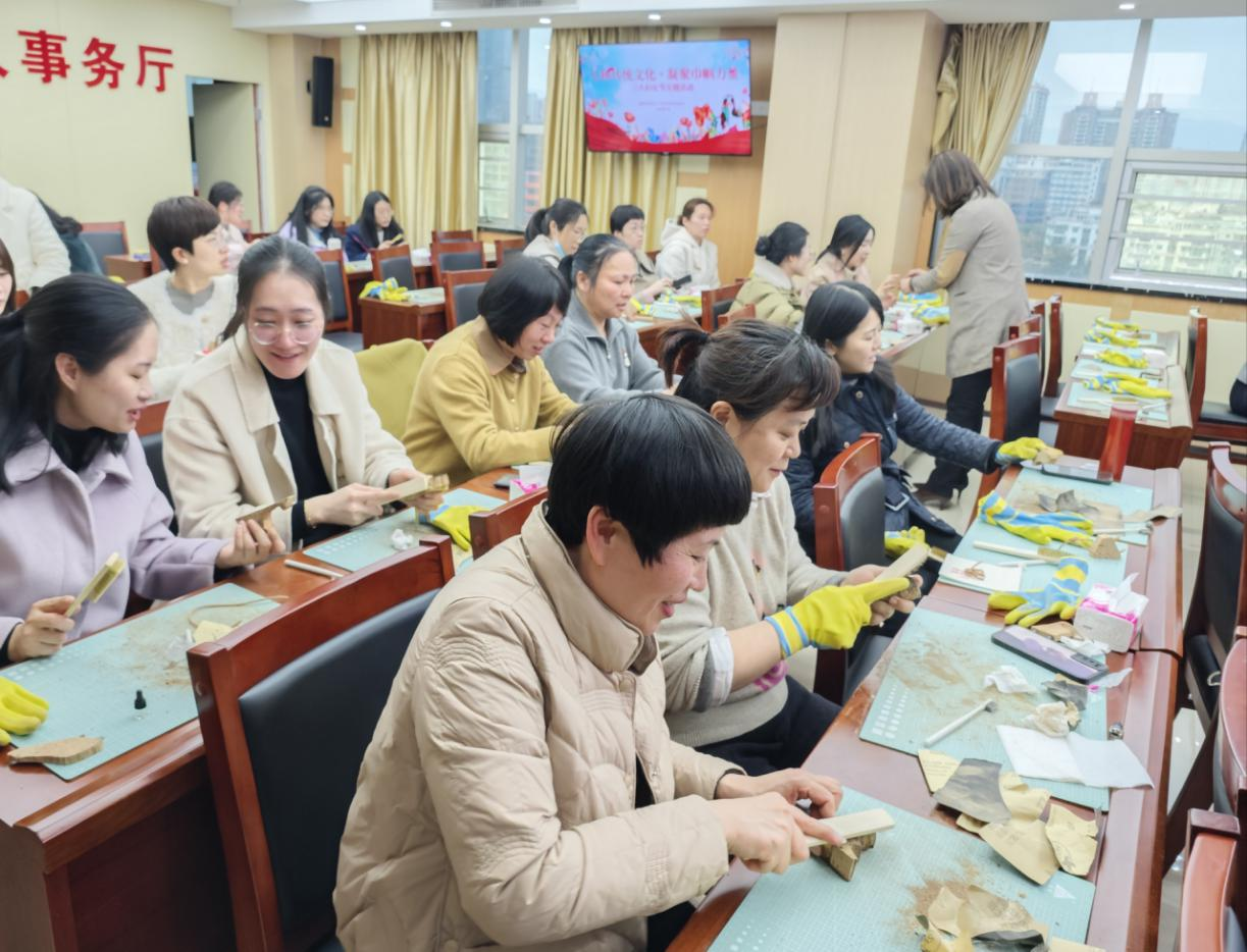 為慶祝國際“三八”婦女節(jié)成立114周年,3月7日下午,省退役軍人事務(wù)廳機(jī)關(guān)婦委會組織開展以“弘揚(yáng)傳統(tǒng)文化·凝聚巾幗力量”為主題的軟木畫制作活動,廳二級巡視員陳勇到場對大家致以節(jié)日祝福!廳機(jī)關(guān)和在榕所屬單位全體女干部職工代表參加了活動。 活動現(xiàn)場,軟木畫專家對國家非物質(zhì)文化遺產(chǎn)——福州“三絕”之一的軟木畫的文化、歷史及制作技藝進(jìn)行授課,隨后,全體女干部職工們在專家的指導(dǎo)下,一邊聆聽非遺文化,一邊認(rèn)真打磨,在方寸間感受手造福州軟木畫魅力和傳統(tǒng)文化的博大精深,在沉浸式體驗(yàn)軟木康養(yǎng)梳和擴(kuò)香器的制作中,探尋一塊木頭如何變成一幅絢麗的“無聲的詩,立體的畫”。 大家紛紛表示,此次活動充分感受到了廳黨組和廳機(jī)關(guān)婦委會的關(guān)懷和溫暖,加深了對傳統(tǒng)非遺文化和福文化的理解,今后將以更加昂揚(yáng)的斗志和充沛的精力,在推動退役軍人工作中展現(xiàn)新作為,在引領(lǐng)社會文明新風(fēng)中作出新貢獻(xiàn),在強(qiáng)化自身綜合素質(zhì)中樹立新形象,為推動我省退役軍人工作高質(zhì)量發(fā)展實(shí)現(xiàn)新突破貢獻(xiàn)巾幗力量。 |