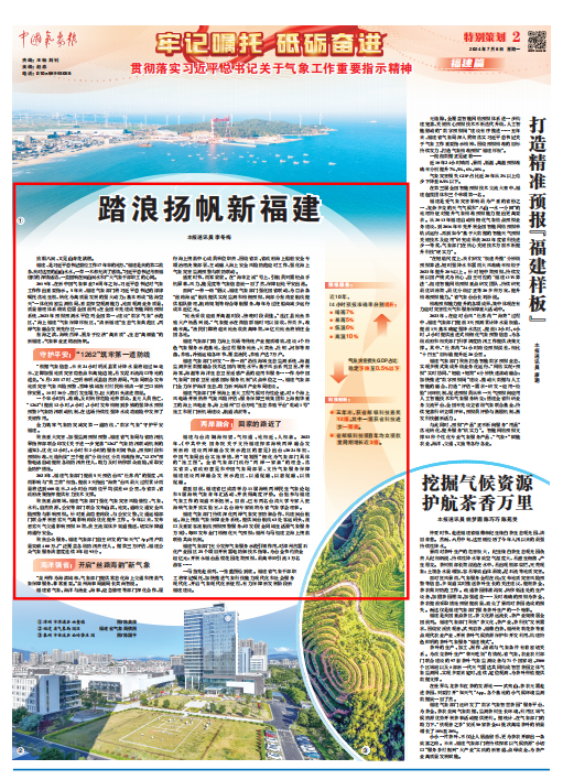 放眼八閩,又見山青花欲燃。 福建,是習近平總書記曾經(jīng)工作17年半的地方,“福建是我的第二故鄉(xiāng),我對這里的山山水水、一草一木都充滿了感情?!绷暯娇倳浛疾旄=〞r的深情話語,一直回響在閩山閩水和廣大氣象干部職工的心間。 2019年,在新中國氣象事業(yè)70周年之際,習近平總書記對氣象工作作出重要指示。5年來,福建氣象部門將習近平總書記的諄諄囑托落地生根,轉(zhuǎn)化為高質(zhì)量發(fā)展的強大動力:基本形成“陸海空天”一體化精密監(jiān)測格局,垂直探空觀測能力、地面觀測業(yè)務質(zhì)量、質(zhì)量管理體系績效位居全國前列;在全國率先建成智能網(wǎng)格預報系統(tǒng),2023年預報預測水平位列全國第一;建設“數(shù)字氣象”示范區(qū)、“海上福建”氣象保障樣板區(qū)、“清新福建”生態(tài)氣象典范區(qū)、兩岸氣象融合發(fā)展先行區(qū)…… 東海之濱,海峽西岸,置身于經(jīng)濟“高素質(zhì)”、生態(tài)“高顏值”的新福建,氣象事業(yè)正踏浪揚帆。 守護平安:“1262”筑牢第一道防線 “根據(jù)氣象信息,未來24小時明溪縣累計降水量將超過50毫米,立即加強地質(zhì)災害隱患點和高陡邊坡、易發(fā)泥石流溝口等地的巡查?!?月12日17時,三明市明溪縣自然資源局、氣象局聯(lián)合發(fā)布地質(zhì)災害氣象風險預警,雪峰鎮(zhèn)城東村村民賴錦清一家三口被轉(zhuǎn)移安置。18時30分,房后發(fā)生塌方,巨大的石頭滾進房屋。 一個半小時內(nèi),準確、及時轉(zhuǎn)移危險地帶群眾,且無人員傷亡,“1262”(提前12小時、6小時、2小時發(fā)布精細到鄉(xiāng)鎮(zhèn)的強降水預報預警)氣象防汛聯(lián)動機制,在這場持續(xù)性強降水成功避險中發(fā)揮了關(guān)鍵作用。 全力筑牢氣象防災減災第一道防線,“數(shù)字氣象”守護平安福建。 聚焦重大災害,加強監(jiān)測預報預警,福建省氣象局與省防汛抗旱指揮部聯(lián)合印發(fā)《關(guān)于進一步完善“1262”氣象防汛聯(lián)動機制的通知》,優(yōu)化12小時、6小時和2小時的服務時間節(jié)點、預報時段和預報標準,無縫銜接“三個提前”分級分區(qū)分類精準指揮。“12379”預警電話自動提醒各級防汛責任人,助力及時轉(zhuǎn)移群眾避險、采取安全防護措施。 2023年,福建氣象部門提前5天預估臺風“杜蘇芮”的強度、風雨影響與“莫蘭蒂”相當,提前3天指出“海葵”臺風最大過程累計雨量將達到600毫米,24小時臺風路徑平均誤差68公里,為省委、省政府決策指揮提供有力技術(shù)支撐。 聚焦重點領(lǐng)域,福建氣象部門強化氣象災害風險管控,氣象、水利、自然資源、公安等部門聯(lián)合發(fā)布山洪、地災、道路交通安全風險預警與影響預報。針對重點隱患路段,與公安交警、交通運輸部門聯(lián)合開展惡劣天氣高影響路段優(yōu)化提升工作。今年以來,發(fā)布惡劣天氣交通影響預報38期,獲主流媒體多渠道推送,切實保障道路通行安全。 聚焦公眾服務,福建氣象部門自主研發(fā)的“知天氣”App用戶數(shù)量突破400萬,廣泛覆蓋各級防汛責任人。據(jù)第三方評估,福建公眾氣象服務滿意度連續(xù)3年超93分。 海洋強?。洪_啟“絲路海韻”新氣象 “泉州作為海濱城市,氣象部門提供常態(tài)化海上交通和搜救氣象保障服務,非常重要?!比莺J戮指本珠L黃尚智說。 福建省氣象、海洋與漁業(yè)、海事、應急管理等部門深化合作,履行海上搜救中心成員單位職責,圍繞省委、省政府海上船舶安全專項治理決策部署,主動融入海上安全風險防范應對工作,強化海上氣象災害監(jiān)測預警與聯(lián)防聯(lián)動。 盛夏時節(jié),雨霧蒙蒙。在“海豐立誠”號上,引航員只需輕點手機屏幕,風力、能見度等氣象信息就一目了然,保障巨輪平安出港。 面向“一帶一路”倡議,福建氣象部門強化國省聯(lián)動,為百余條“絲路海運”航線提供實況監(jiān)測和精細預報,向部分東南亞航線提供船隊管理、航路規(guī)劃等綜合導航服務,每年為過往船商減少運行成本近億元。 “鮑魚采收應避開高溫時段,傍晚時段最佳?!边B江縣鮑魚養(yǎng)殖大戶楊昌興說,“氣象提示在微信群隨時可以接收,種類多、準確率高?!睗O民們即將迎來鮑魚收獲高峰期,10億粒鮑魚將銷往全國各地。 福建氣象部門助力海上牧場等傳統(tǒng)產(chǎn)業(yè)提質(zhì)增效,建設4個特色氣象服務示范基地,全過程服務鮑魚、大黃魚、牡蠣、河豚等育苗、養(yǎng)殖、冷鏈運輸各環(huán)節(jié),覆蓋漁民、養(yǎng)殖戶達7萬戶。 福建氣象部門研發(fā)“一帶一路”沿線海域生態(tài)監(jiān)測系統(tǒng),海溫監(jiān)測多星數(shù)據(jù)融合技術(shù)達國內(nèi)領(lǐng)先水平;基于風云系列衛(wèi)星,開展海霧、海溫等海洋生態(tài)衛(wèi)星遙感產(chǎn)品的應用和服務……作為中國氣象局“國省衛(wèi)星遙感國際服務機制”試點單位之一,福建氣象部門全力保護海洋生態(tài),助力新興海洋產(chǎn)業(yè)布局建設。 福建氣象部門開展海上重大工程氣候可行性論證,對8個海上風電場開展熱帶氣旋風險評估;服務保障三峽集團和上海振華重工的海上風電業(yè)務、海上福州“百臺萬噸”生態(tài)養(yǎng)殖平臺“乾動1號”施工和廈門新機場建設、航道清淤等。 兩岸融合:回家的路近了 福建與臺灣隔海相望,氣