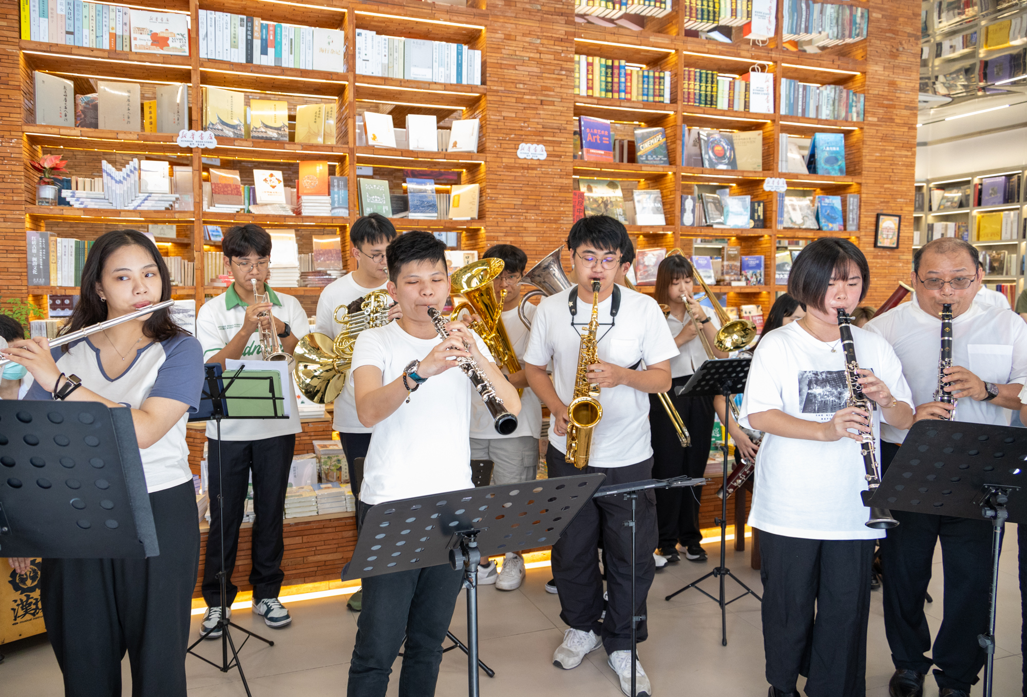當(dāng)天上午10點(diǎn),鼓浪嶼新華書店外,一陣悅耳的旋律響起,臺(tái)灣青年音樂人林宛蓁吹響了手中的雙簧管,緩步進(jìn)入書店,手持長(zhǎng)笛、單簧管、巴松的青年樂手從書店的各個(gè)角落輕盈而出,共同演奏《廈門親像一首歌》,瞬間把寧?kù)o的閱讀空間變成了活力四射的音樂現(xiàn)場(chǎng)。隨著音樂緩緩流淌而出,眾多市民游客循聲聚攏而來,駐足欣賞,大家紛紛掏出手機(jī)記錄下這一美好時(shí)刻。 緊接著,樂團(tuán)帶來了經(jīng)典情歌《月亮代表我的心》,熟悉的旋律引發(fā)了現(xiàn)場(chǎng)共鳴,不少人跟隨音樂節(jié)奏輕聲哼唱。最后,在一首充滿青春活力的《戀愛ing》中,現(xiàn)場(chǎng)氣氛被推向了高潮。 “忍不住跟著唱了起來?!庇慰屯跖勘硎?,臺(tái)灣樂團(tuán)展現(xiàn)的青春力量很有感染力,“《月亮代表我的心》這首歌讓我感覺回到了青春時(shí)期,兩岸文化同根同源,音樂可以讓我們獲得情感上的共鳴。 臺(tái)灣南湖校友管樂團(tuán)成員與領(lǐng)導(dǎo)嘉賓在新華書店鼓浪嶼音樂旅游店合影留念 據(jù)了解,該樂團(tuán)除指揮老師外,都是35歲以下的青年,其中多數(shù)是首次踏足大陸的“首來族”。 “廈門和臺(tái)灣很相似,感覺很親切?!睒肥謴埼膹?duì)第一次的大陸之行充滿了期待,“我很珍惜這次結(jié)交新朋友、拓寬視野的寶貴機(jī)會(huì)。希望能通過此次研學(xué)之行對(duì)福建的文化、風(fēng)土人情有更直觀的感受。 據(jù)悉,海峽藝術(shù)文化交流管弦音樂周將從7月24日持續(xù)至7月29日,共分為“琴島快閃”“鰲峰樂韻”“閩越夢(mèng)回”“兩岸非遺”四個(gè)篇章,臺(tái)灣南湖高中校友管樂團(tuán)將在廈門和福州開展交流活動(dòng),飽覽福廈風(fēng)光,體驗(yàn)閩越文化。通過開展音樂會(huì)、快閃演出等多類型的文化活動(dòng),與大陸青年開展交流互動(dòng),增進(jìn)情感聯(lián)結(jié),拓展兩岸文化藝術(shù)領(lǐng)域合作渠道。 |