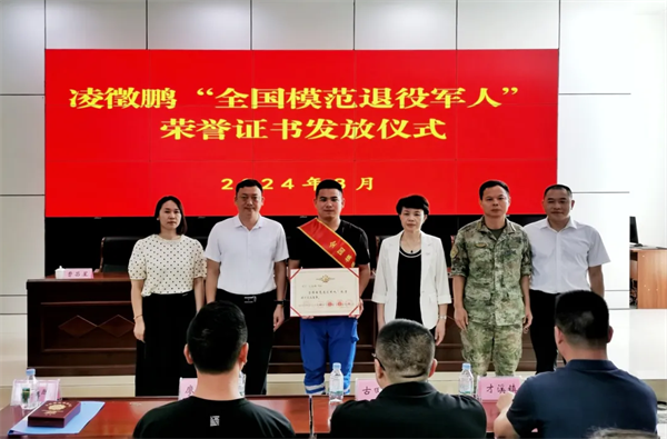 全國退役軍人工作會議表彰了全國模范退役軍人和全國退役軍人工作模范單位、模范個人。我省共有11人獲全國模范退役軍人,2個集體獲全國退役軍人工作模范單位,1人獲全國退役軍人工作模范個人。連日來,省、市退役軍人事務(wù)部門紛紛聯(lián)合有關(guān)單位通過上門走訪看望,舉行頒獎儀式等,為他們頒發(fā)獎?wù)隆⒆C書,并送上鮮花。強(qiáng)調(diào)各級退役軍人事務(wù)部門工作者和廣大退役軍人要深入學(xué)習(xí)貫徹習(xí)近平總書記對退役軍人工作重要論述和全國退役軍人工作會議精神,向全國模范學(xué)習(xí)、致敬,見賢思齊,崇尚先進(jìn),爭當(dāng)先鋒,為譜寫中國式現(xiàn)代化福建篇章作出新的更大貢獻(xiàn)。 近日,正在平潭綜合實驗區(qū)調(diào)研的省退役軍人事務(wù)廳黨組書記、廳長羅慶春來到平潭綜合實驗區(qū)退役軍人關(guān)愛協(xié)會,看望剛剛獲得“全國模范退役軍人”榮譽(yù)稱號的丁恒會長,對其榮獲“全國模范退役軍人”表示祝賀! 羅慶春指出,這次受表彰的全國模范退役軍人是近年來我省退役軍人中涌現(xiàn)出來的杰出優(yōu)秀代表,他們始終聽黨話、跟黨走,敢于擔(dān)當(dāng)、積極作為、努力奉獻(xiàn),在各自崗位上作出了驕人業(yè)績,為社會進(jìn)步和經(jīng)濟(jì)發(fā)展作出了突出貢獻(xiàn),為廣大退役軍人樹立了榜樣。羅慶春希望他們珍惜榮譽(yù)、永葆本色,繼續(xù)發(fā)揚(yáng)軍人優(yōu)良作風(fēng),展現(xiàn)新?lián)?dāng)新作為,引領(lǐng)廣大退役軍人奮進(jìn)新征程建功新時代。羅慶春強(qiáng)調(diào),各級退役軍人事務(wù)部門要大力宣揚(yáng)全國模范的先進(jìn)事跡,教育引導(dǎo)廣大退役軍人堅守初心使命,激勵推動各級退役軍人事務(wù)部門及退役軍人工作者見賢思齊、比學(xué)趕超,切實把退役軍人接收安置好、服務(wù)保障好、教育管理好、作用發(fā)揮好、權(quán)益維護(hù)好,讓軍人成為全社會尊崇的職業(yè)、讓退役軍人成為全社會尊重的人。 丁恒表示,這枚獎?wù)率且环莨膭詈捅薏?,也是一份沉甸甸的?zé)任和動力,能獲此殊榮,無比激動和感慨。這份榮譽(yù)不僅是對其個人過去軍旅生涯和工作的肯定,更是對廣大退役軍人辛勤付出和無私奉獻(xiàn)的一種認(rèn)可。作為一名老黨員、老兵,將永葆軍人本色,牢記使命擔(dān)當(dāng),繼續(xù)發(fā)揮模范帶頭作用,努力打造一流優(yōu)質(zhì)的協(xié)會組織,切實把退役軍人服務(wù)保障好、作用發(fā)揮好和權(quán)益維護(hù)好。 平潭綜合實驗區(qū)退役軍人事務(wù)局黨組書記、局長王浩參加。 福州市 8月6日,福州市退役軍人事務(wù)局黨組書記、局長張則銘一行前往福建千金諾投資集團(tuán)有限公司,走訪慰問“全國模范退役軍人”莫良明。 “作為一名退役軍人,我由衷感恩社會的關(guān)愛,沒有退役軍人身份,我就不能取得今天的成就。”莫良明表達(dá)了對社會和各級退役軍人事務(wù)部門的感激之情。他表示,將繼續(xù)飲水思源,盡全力回饋社會。 廈門市 8月6日,廈門市退役軍人事務(wù)局在廈門市雙擁大廈舉行“全國模范退役軍人”游文晃頒獎儀式,廈門市退役軍人事務(wù)局副局長曾福華、林虹出席儀式,并為榮獲“全國模范退役軍人”的游文晃頒發(fā)獎?wù)潞妥C書,廈門市退役軍人事務(wù)局機(jī)關(guān)各業(yè)務(wù)處室、鷺島老兵和媒體代表等共同見證這一榮耀時刻。 游文晃說:“這次被評為‘全國模范退役軍人’,感到很自豪,這既是對我的肯定,同時也是鞭策。我會一輩子學(xué)雷鋒做好事,把慈善事業(yè)進(jìn)行到底!” 漳州市 8月13日上午,漳州市退役軍人事務(wù)局到漳浦縣司法局為劉坤江同志頒發(fā)證書,漳州市退役軍人事務(wù)局黨組書記、局長張國海,漳浦縣委常委、縣人武部政委張建華為劉坤江分別頒發(fā)獎狀、獎?wù)虏①浰王r花。市、縣退役軍人事務(wù)局、縣司法局相關(guān)科室負(fù)責(zé)人,綏安鎮(zhèn)領(lǐng)導(dǎo)等代表共同見證榮耀時刻。 劉坤江說:“將珍惜這份來之不易的榮譽(yù),珍惜‘奮斗出來的幸?!?,始終堅持發(fā)展新時代‘楓橋經(jīng)驗’,以模范帶頭作用為家鄉(xiāng)建設(shè)多作貢獻(xiàn),用退役軍人表率、全力維護(hù)轄區(qū)社會和諧穩(wěn)定,讓黨和政府放心,讓人民群眾滿意?!?/p> 莆田市 8月8日下午,莆田市退役軍人事務(wù)局、莆田市公安局相關(guān)領(lǐng)導(dǎo)到涵西派出所為鄭俊峰同志“送獎上門”,將組織的關(guān)懷關(guān)愛及時傳遞給一線民輔警。授獎儀式上,莆田市退役軍人事務(wù)局黨組書記、局長黃松林,莆田市公安局黨委委員、副局長、政治部主任方永武,涵江區(qū)副區(qū)長、公安分局局長崔義承為鄭俊峰分別頒發(fā)獎狀、獎?wù)虏①浰王r花。會議特邀鄭俊峰母親——“全國公安機(jī)關(guān)愛警母親”方意勤共同見證這一榮譽(yù)時刻。 “我將繼續(xù)保持退役軍人的優(yōu)良作風(fēng),發(fā)揮模范作用,靠前一步、主動作為,以實際行動回應(yīng)人民群眾的新期盼新要求?!编嵖》灞硎尽?/p> 南平市 8月1日,南平市退役軍人事務(wù)局黨組書記、局長謝金潤帶領(lǐng)局班子成員走訪看望了“全國模范退役軍人”、建陽區(qū)末將家庭農(nóng)場負(fù)責(zé)人陳金華,對他榮獲“全國模范退役軍