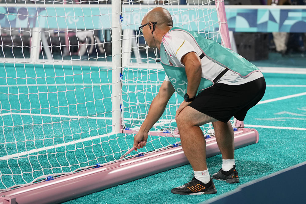 這是9月1日拍攝的巴黎殘奧會(huì)盲人足球比賽現(xiàn)場。新華社記者 熊琦 攝 1日晚,巴黎殘奧會(huì)盲人足球小組賽首輪,進(jìn)攻端占優(yōu)的中國隊(duì)0:1不敵東道主法國隊(duì)。此役,35歲老將俞裕錟替補(bǔ)出戰(zhàn),這是他第四次參加殘奧會(huì)。“我們打出了球隊(duì)的風(fēng)格,但還需要在進(jìn)攻端提升把握機(jī)會(huì)的能力,爭取更多的進(jìn)球?!庇嵩eU說,“輸了沒關(guān)系,下一場,我們?cè)賮?!?/p> 沒有華麗的踩單車過人,沒有炫酷的驚天倒鉤……除兩隊(duì)門將外,八名球員戴著黑色眼罩,在一次次奔跑、沖撞、摔倒、起身的動(dòng)作中循環(huán)往復(fù);比賽中,為不影響運(yùn)動(dòng)員發(fā)揮,現(xiàn)場觀眾只有在進(jìn)球之后才能歡呼喝彩。