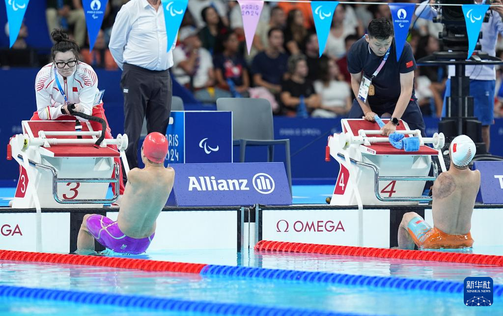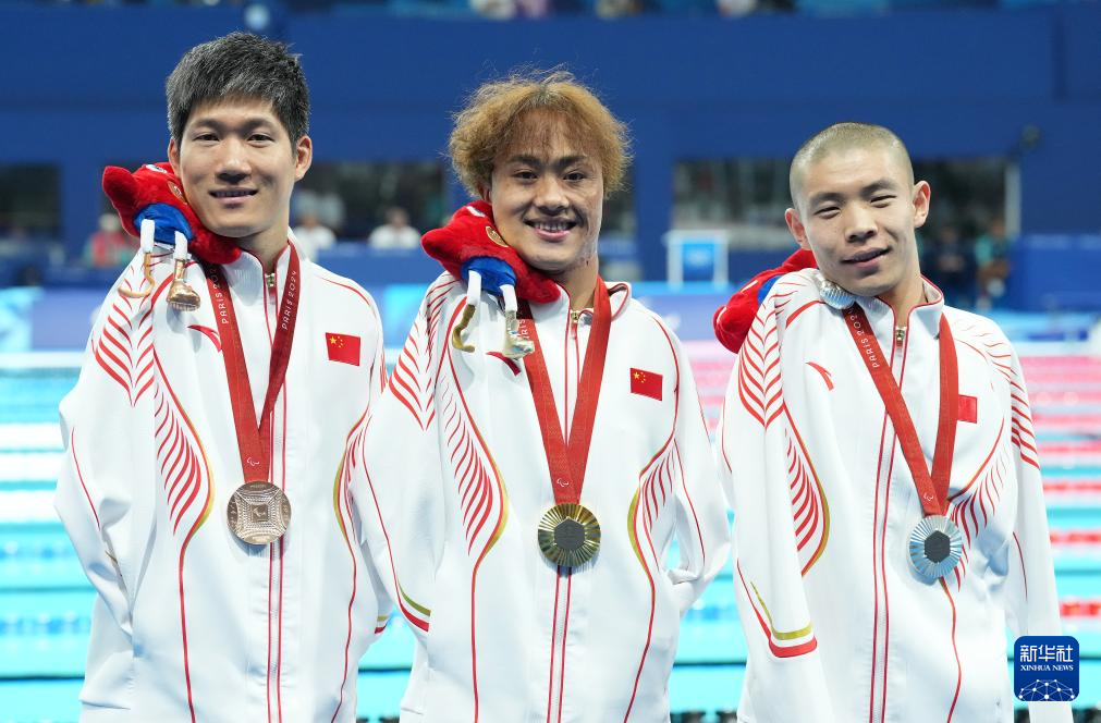 9月3日,在巴黎殘奧會游泳男子50米仰泳S5級決賽中,中國選手袁偉譯、郭金城、王李超包攬冠亞季軍。