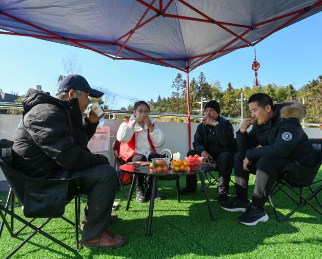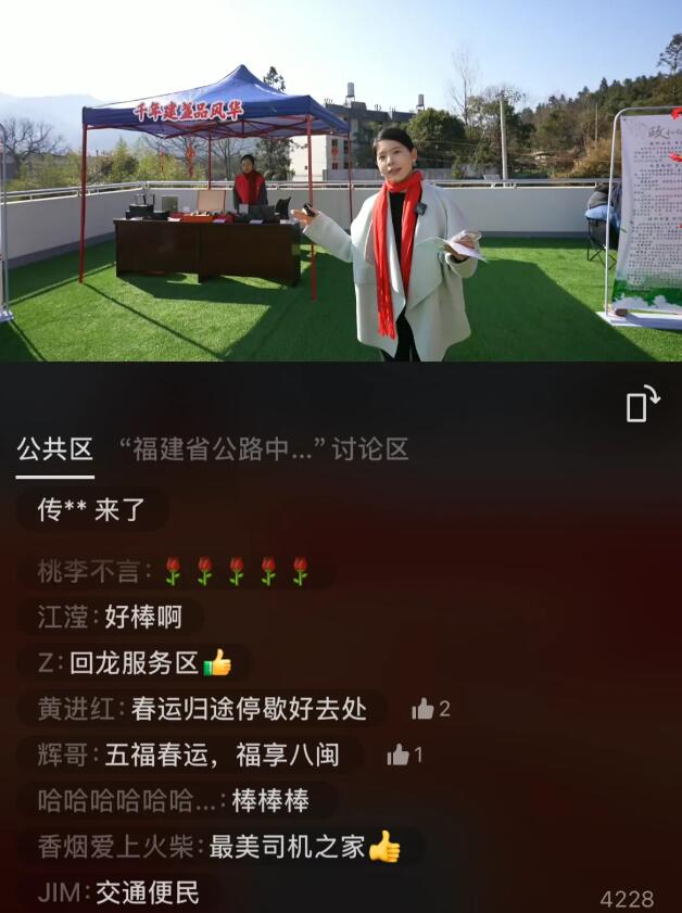 “師傅,給您送福啦!這是我們志愿者自己寫的‘?!趾痛郝?lián),祝您新年快樂,一路平安!”書法愛好者們提筆蘸墨,把對新年的美好愿景融入一張張“?!弊趾痛郝?lián)中,送給過往司乘人員,貼心的服務(wù)讓司乘人員感受到了家的溫暖。 “回龍服務(wù)區(qū)在去年獲評福建省‘最美工會驛站’,讓我們一起走進這座溫馨驛站看一看吧。”活動現(xiàn)場,主持人在線上直播向廣大網(wǎng)友介紹公路驛站的活動情況,通過圖片、視頻展示了武夷山國家公園1號風景道、崇陽溪漫游道、網(wǎng)紅水杉公路等線路的美景和特色,邀請大家在春節(jié)假期期間一同前往游覽打卡,隨機采訪在“共享司機之家”休憩的司乘人員,向他們宣傳春運安全出行小知識,倡導(dǎo)養(yǎng)成良好的安全行車習慣,贈送“平安?!?、愛心禮包,畫面中充滿了幸福歡笑與舒適愜意。