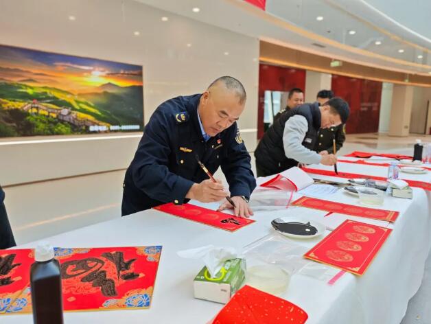 泉州高速執(zhí)法支隊聯(lián)合高速交警、高速運營等單位在泉南高速達埔服務(wù)區(qū)開展志愿服務(wù)活動,多部門書法愛好者組團揮毫潑墨,寫下春聯(lián)和“?!弊炙徒o現(xiàn)場旅客。