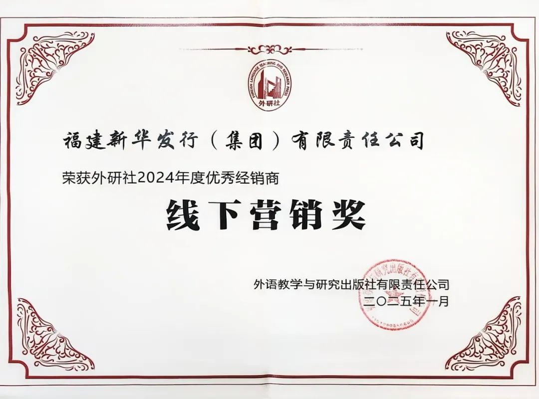 榮獲外研社“2024年度優(yōu)秀經(jīng)銷商線下營(yíng)銷獎(jiǎng)”榮譽(yù)稱號(hào)