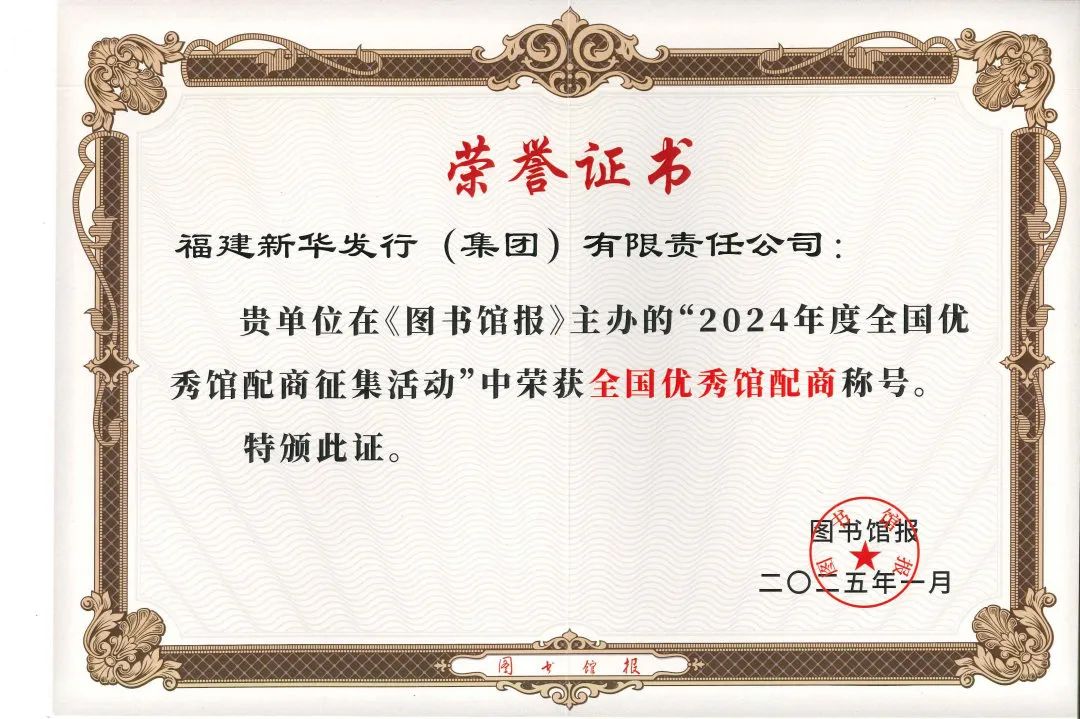 福建新華發(fā)行集團(tuán)榮獲中國(guó)出版集團(tuán)“2024年度最佳重大文化出版工程推介機(jī)構(gòu)”榮譽(yù)稱號(hào)、榮獲人民教育出版社“感動(dòng)人教2024卓越合作伙伴”榮譽(yù)稱號(hào)、榮獲中華書局“銳意進(jìn)取獎(jiǎng)”榮譽(yù)稱號(hào)、榮獲外研社“2024年度優(yōu)秀經(jīng)銷商線下營(yíng)銷獎(jiǎng)”榮譽(yù)稱號(hào)、榮獲《全國(guó)大中專教學(xué)用書匯編》編委會(huì)“全國(guó)優(yōu)秀教材經(jīng)銷商”榮譽(yù)稱號(hào)、榮獲圖書館報(bào)“2024年度全國(guó)優(yōu)秀館配商”榮譽(yù)稱號(hào),集團(tuán)教材發(fā)行中心主任潘明劼榮獲人民教育出版社“感動(dòng)人教2024教學(xué)資源服務(wù)獎(jiǎng)”。