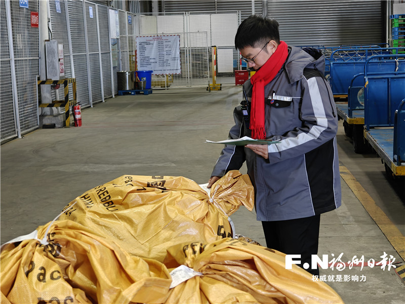 1月28日上午8:40,在福州機場國際貨運站,王比爾細致核對前夜貨運保障記錄。作為貨運班組長,他需要統(tǒng)籌協(xié)調(diào),在有限時間內(nèi)完成貨物出入港的全流程。