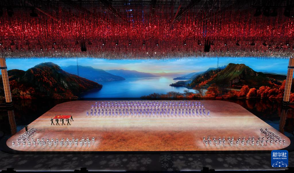 2月7日,中華人民共和國國旗在開幕式現(xiàn)場升起。