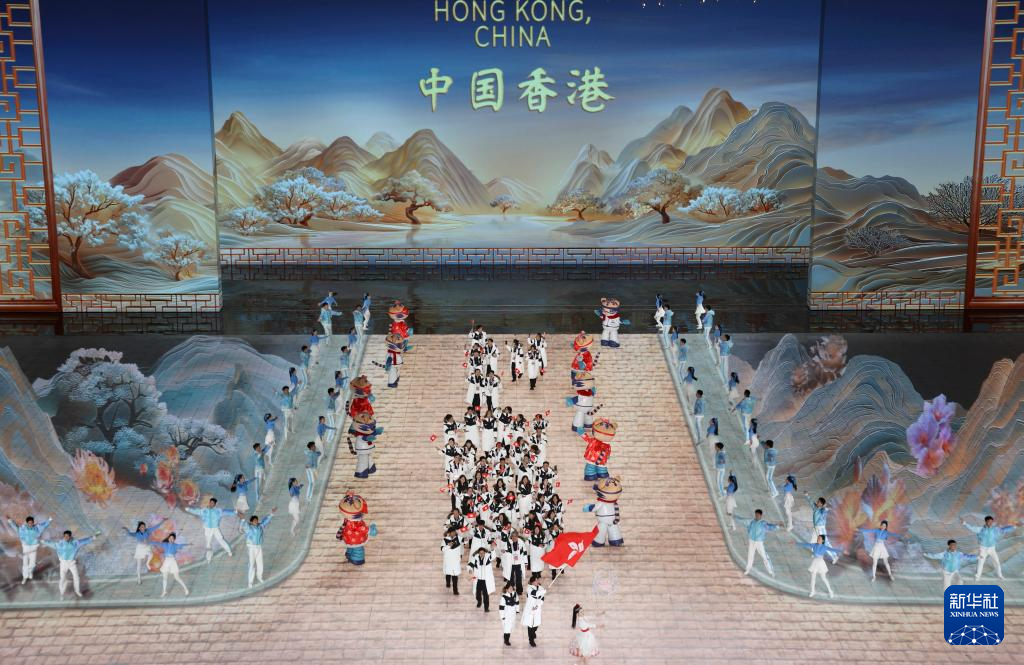 2月7日,中國香港體育代表團(tuán)在開幕式上入場。