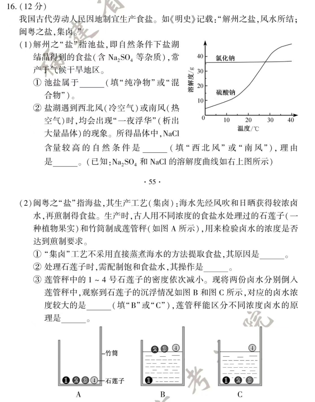 今年福建中考試卷與答案發(fā)布了,與鹽有關(guān)!