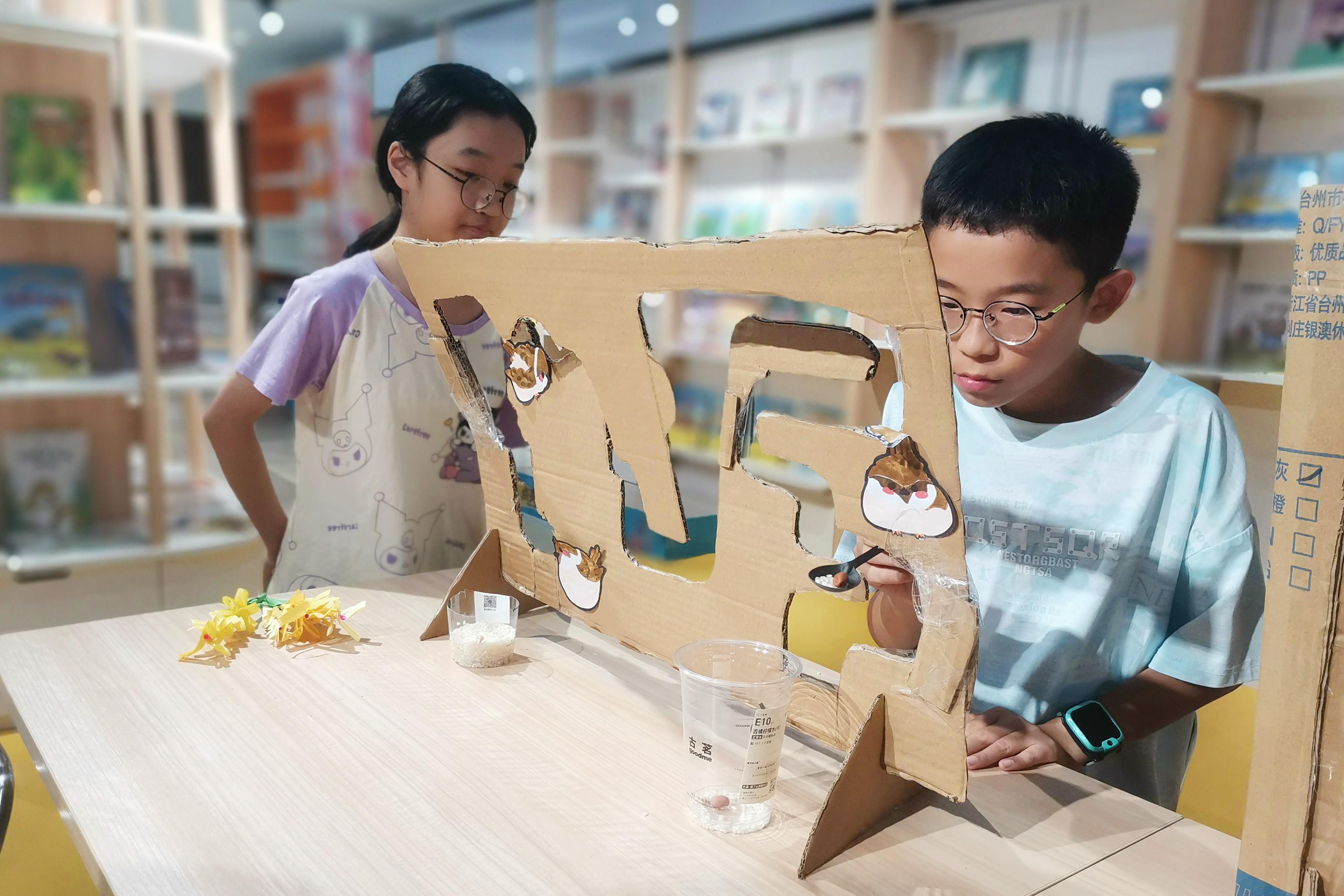 武平分公司聯(lián)合福建少年兒童出版社,邀請(qǐng)作家王君心舉辦“想象力,讓生活充滿驚喜”主題講座 另一邊,武平分公司聯(lián)合福建少年兒童出版社,邀請(qǐng)“暑假讀一本好書(shū)”入選作家王君心舉辦“想象力,讓生活充滿驚喜”主題講座。王君心結(jié)合自身創(chuàng)作經(jīng)歷,分享“再多想一點(diǎn)”“萬(wàn)物皆可擬人”的創(chuàng)作方法,鼓勵(lì)孩子們多觀察生活、大膽展開(kāi)聯(lián)想。活動(dòng)還采用線上線下結(jié)合模式,通過(guò)直播讓更多家長(zhǎng)與孩子參與其中。 創(chuàng)意主題,讓孩子“愛(ài)讀書(shū)” 如何讓閱讀不再是“單向輸入”?南安分公司給出了“趣味互動(dòng)+主題深化”的解題模式。南安詩(shī)山門(mén)店圍繞童書(shū)《“蛇”么故事最好聽(tīng)》,通過(guò)趣味問(wèn)答帶領(lǐng)孩子們解讀書(shū)中與“蛇”有關(guān)的民俗故事,讓孩子們親手制作形態(tài)各異的“蛇形”糖畫(huà),在動(dòng)手實(shí)踐中感受民俗文化魅力;梅山門(mén)店聚焦少兒科普?qǐng)D書(shū)《1分鐘讀懂科學(xué)——神奇的化學(xué)》,以日常生活現(xiàn)象導(dǎo)入科學(xué)知識(shí),通過(guò)“透明的雞蛋”實(shí)驗(yàn),讓孩子動(dòng)手探索科學(xué)原理,提升科學(xué)素養(yǎng)。 閩清分公司城關(guān)門(mén)店以《我愛(ài)我的祖國(guó):一粒追夢(mèng)的種子》為主題,向孩子們講述袁隆平院士“一生追夢(mèng)稻花香”、張桂梅校長(zhǎng)“點(diǎn)亮山區(qū)女孩求學(xué)路”、航天英雄楊利偉“叩問(wèn)蒼穹”的感人故事,引導(dǎo)青少年理解個(gè)人成才與祖國(guó)發(fā)展的緊密聯(lián)系?;顒?dòng)還借助“撒播種子、插秧苗、運(yùn)糧食”等趣味游戲,讓孩子體驗(yàn)農(nóng)耕艱辛,懂得珍愛(ài)幸福生活。