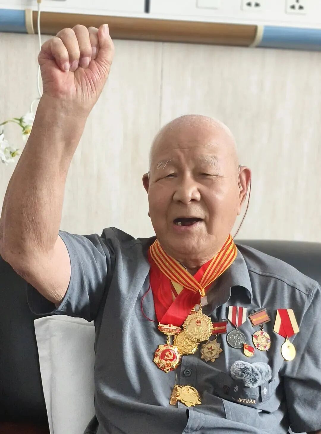 編者按: 為紀(jì)念中國(guó)人民抗日戰(zhàn)爭(zhēng)暨世界反法西斯戰(zhàn)爭(zhēng)勝利80周年,深入挖掘抗戰(zhàn)老兵事跡,傳承紅色基因,省退役軍人事務(wù)廳聯(lián)合各地市退役軍人事務(wù)部門開展走進(jìn)抗戰(zhàn)老兵家庭,重溫抗戰(zhàn)歷史系列活動(dòng)。廳官網(wǎng)官微開辟“致敬抗戰(zhàn)老兵”專欄對(duì)此進(jìn)行系列宣傳,今日推出《蓋鴻儒:山河守望,紛飛戰(zhàn)火中永不褪色的記憶》的故事。 在廈門大學(xué)附屬中山醫(yī)院病房里,記者見到了抗戰(zhàn)老兵蓋鴻儒。他穿著一件深灰色襯衫,面容和藹,笑瞇瞇地跟我們打招呼。雖然腿腳不便,但已近百歲的蓋爺爺聲音依舊洪亮,操著一口濃重的“山東味兒”普通話。
